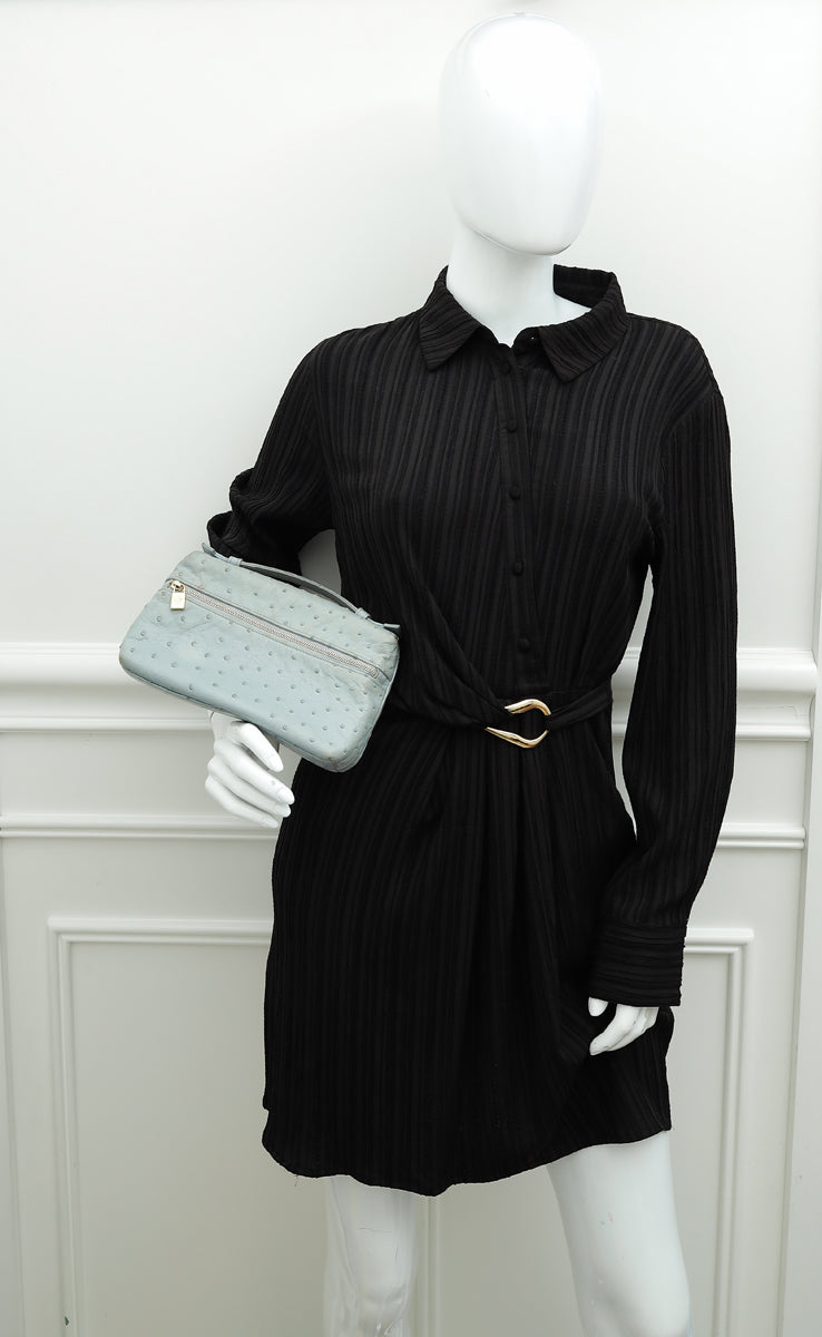 Loro Piana Pale Blue Grey Ostrich Extra Pocket L19 Bag