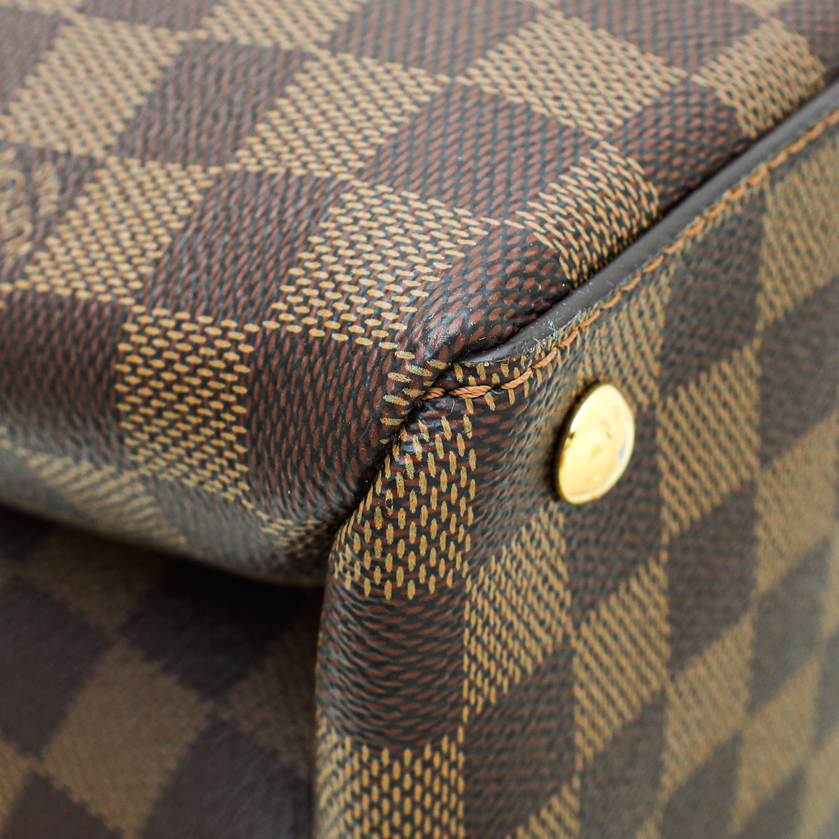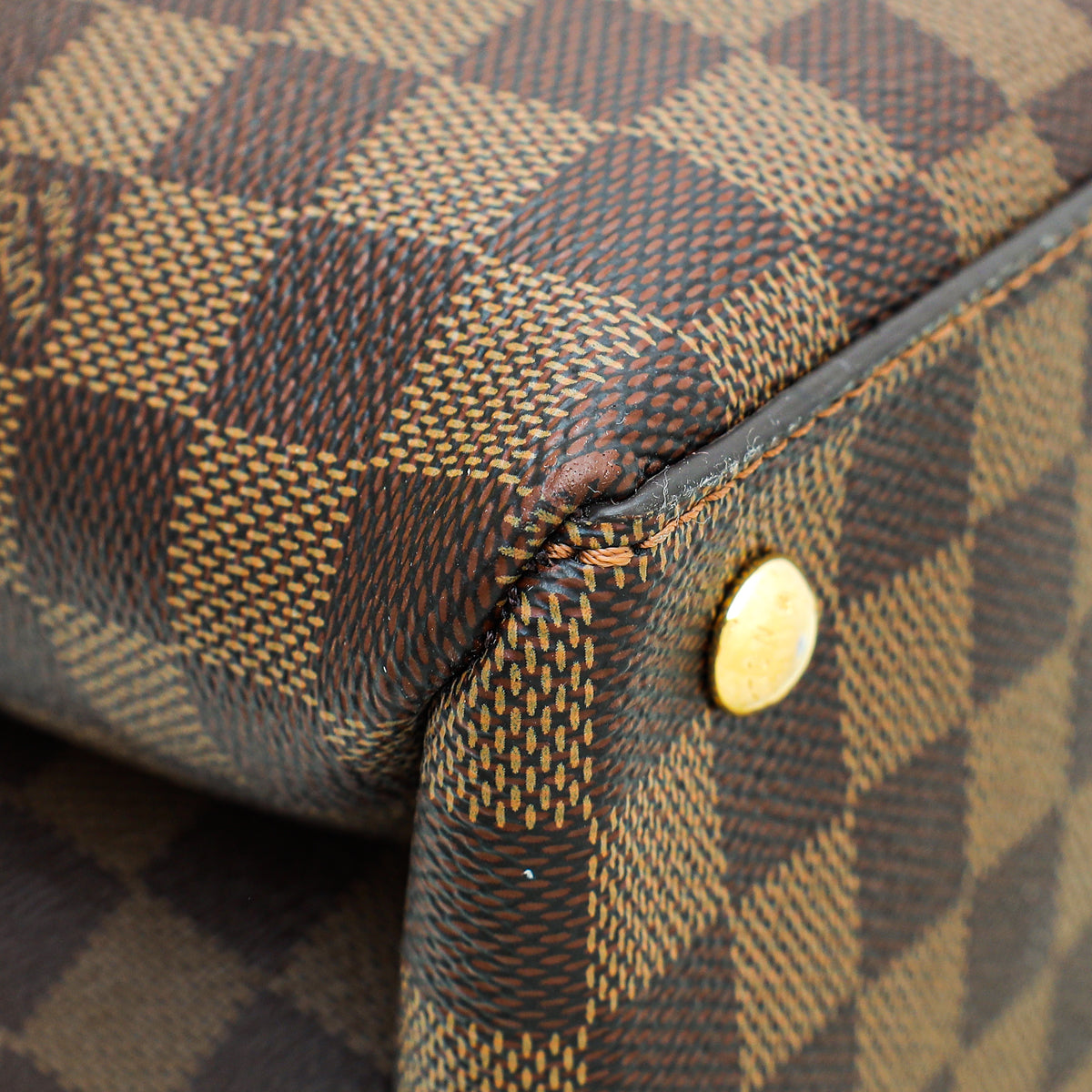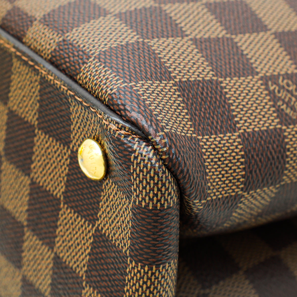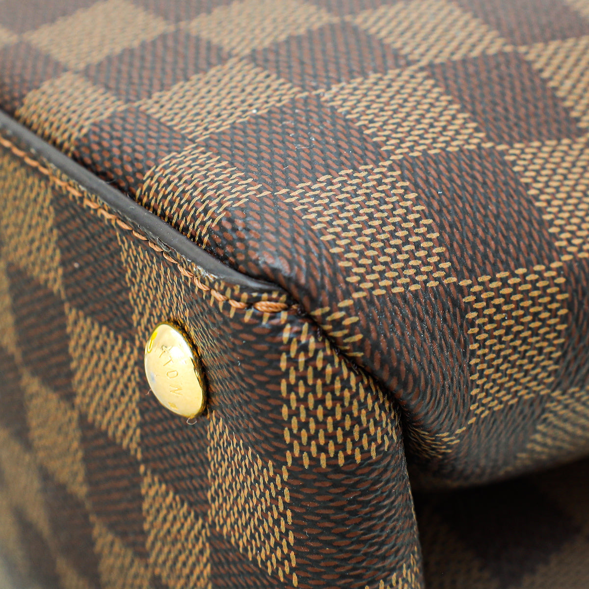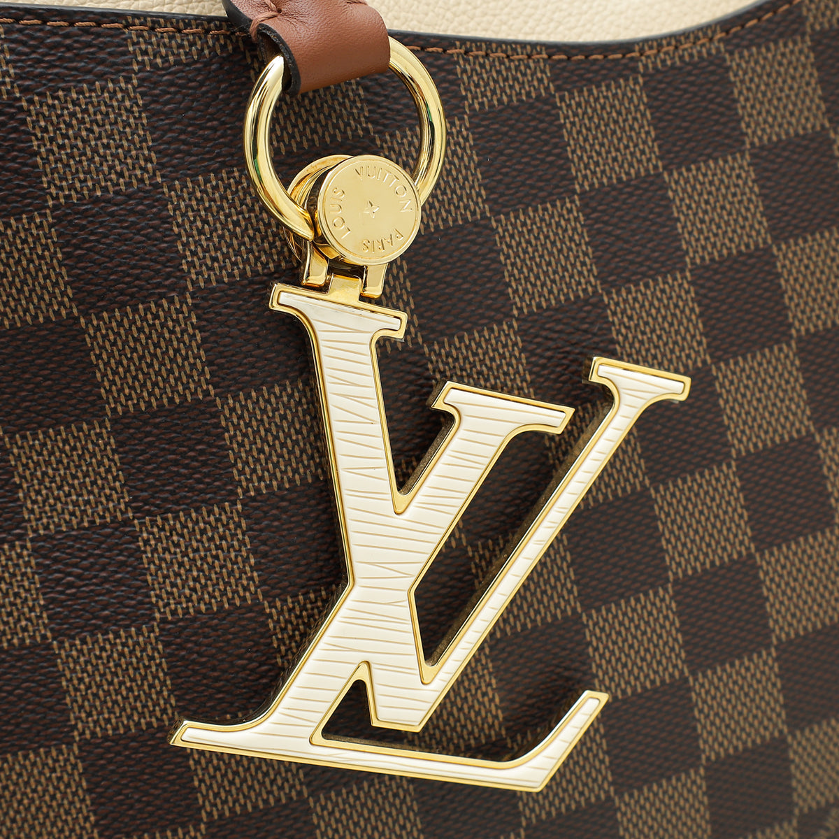 - Material: Damier Ebene Coated Canvas with Tan Leather Trim