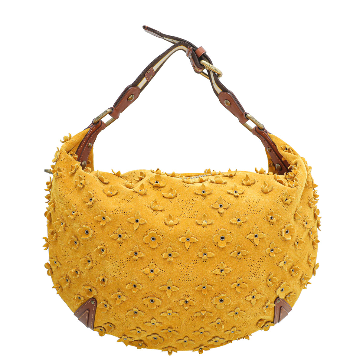 Louis Vuitton Maize Yellow Suede Mahina Fleurs Onatah GM Bag