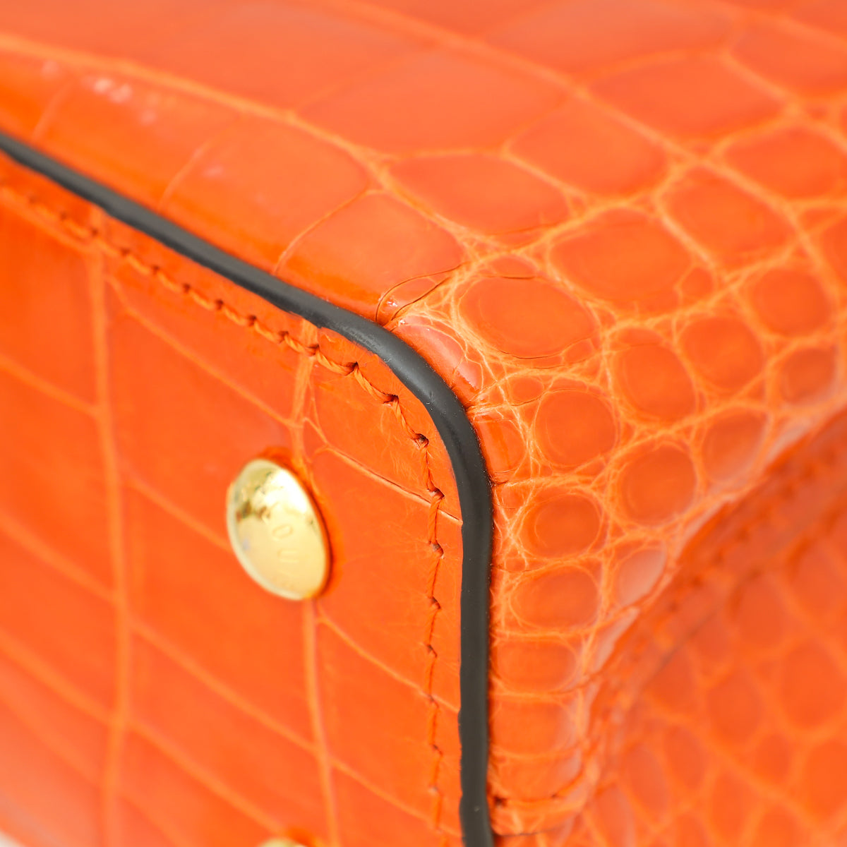 - Material: Orange Shiny Alligator Leather