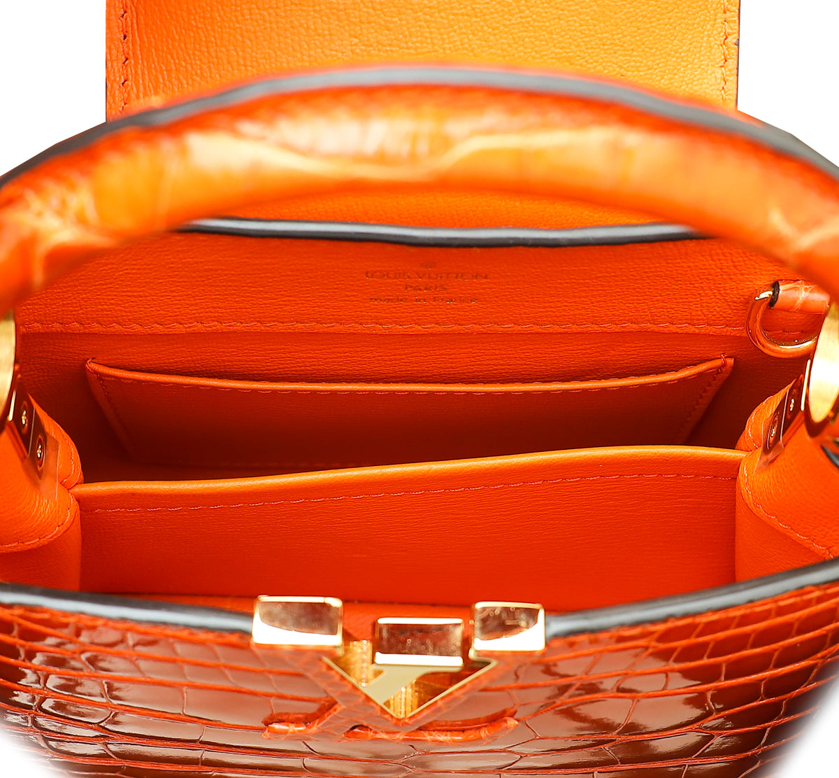 Louis Vuitton Orange Shiny Alligator Mini Capucines Bag