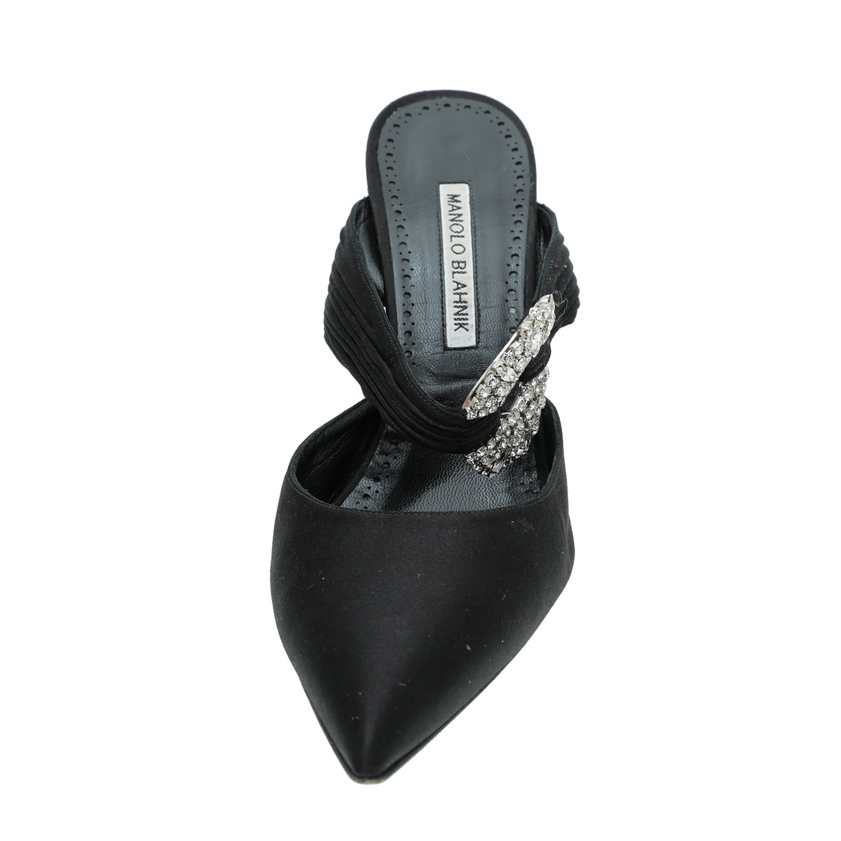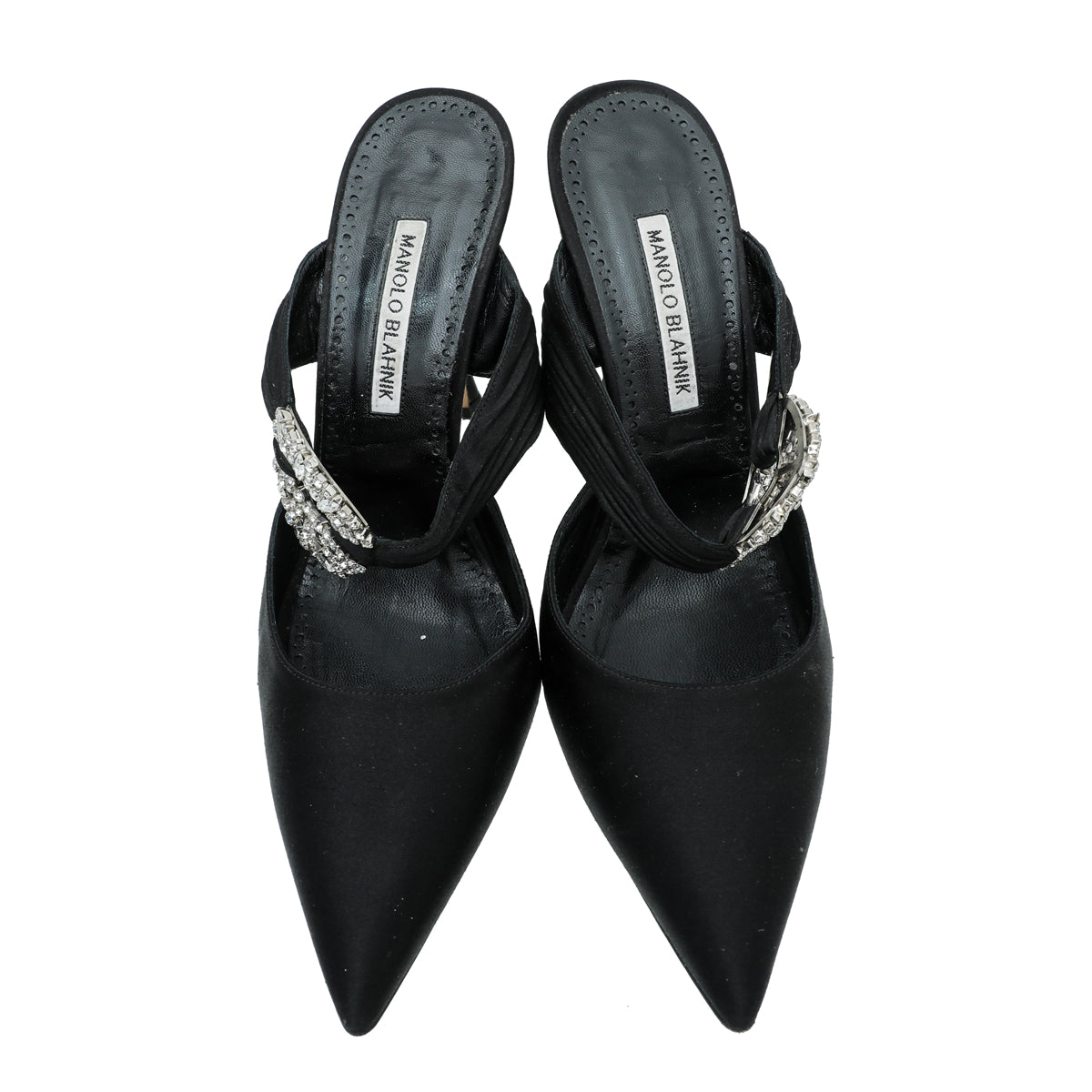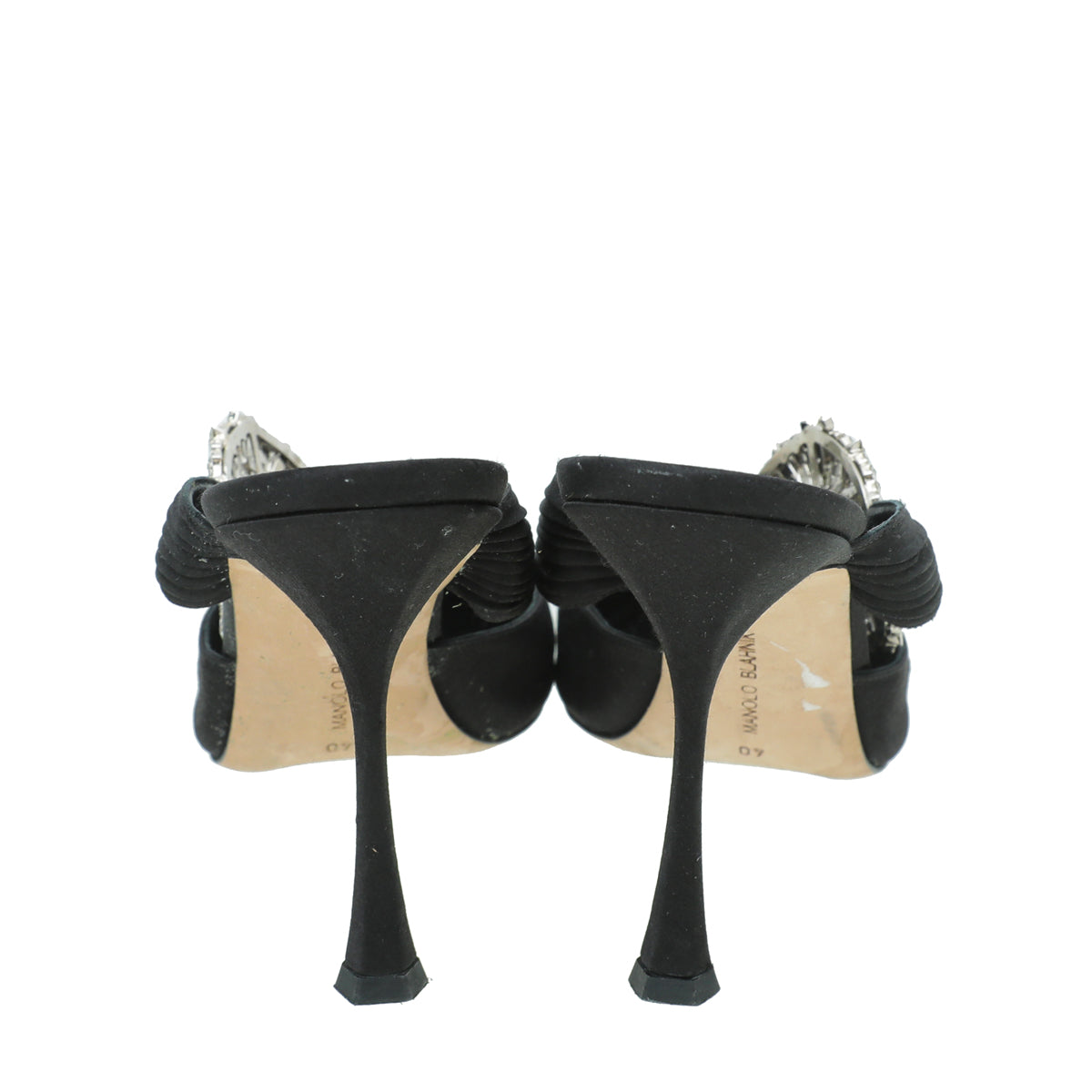 Manolo Blahnik Black Satin Maiduguri 105 Mules 40