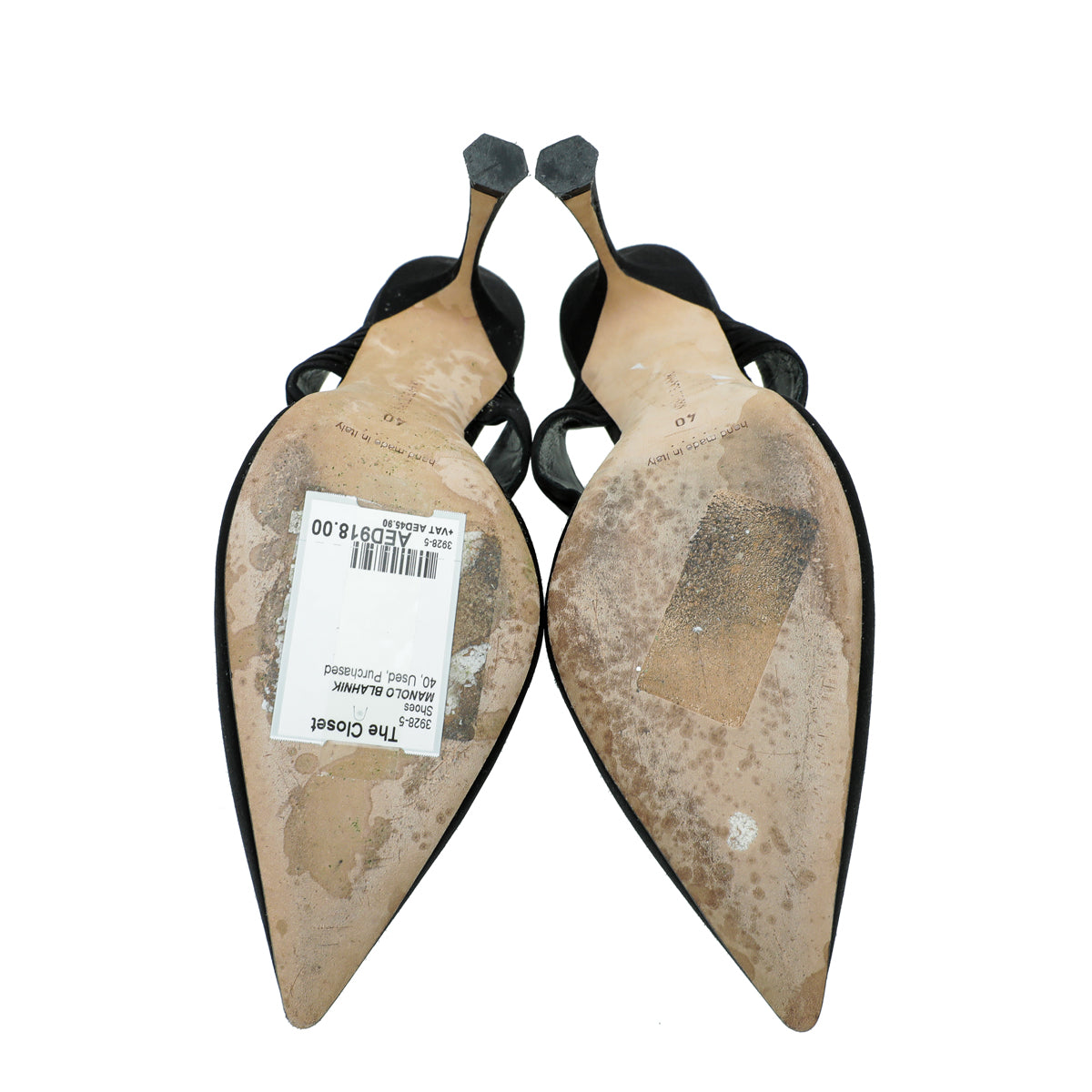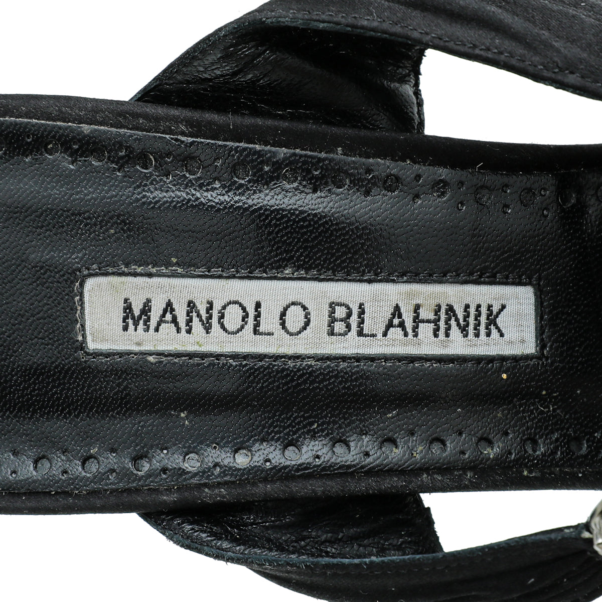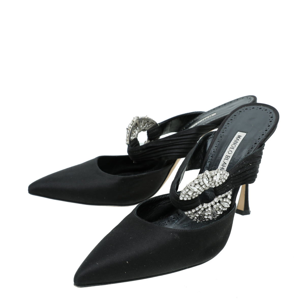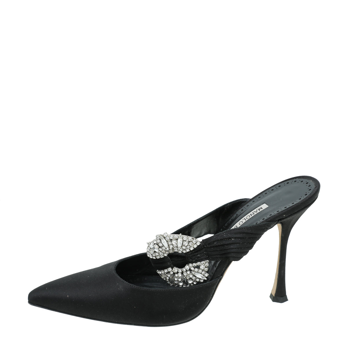 Manolo Blahnik Black Satin Maiduguri 105 Mules 40