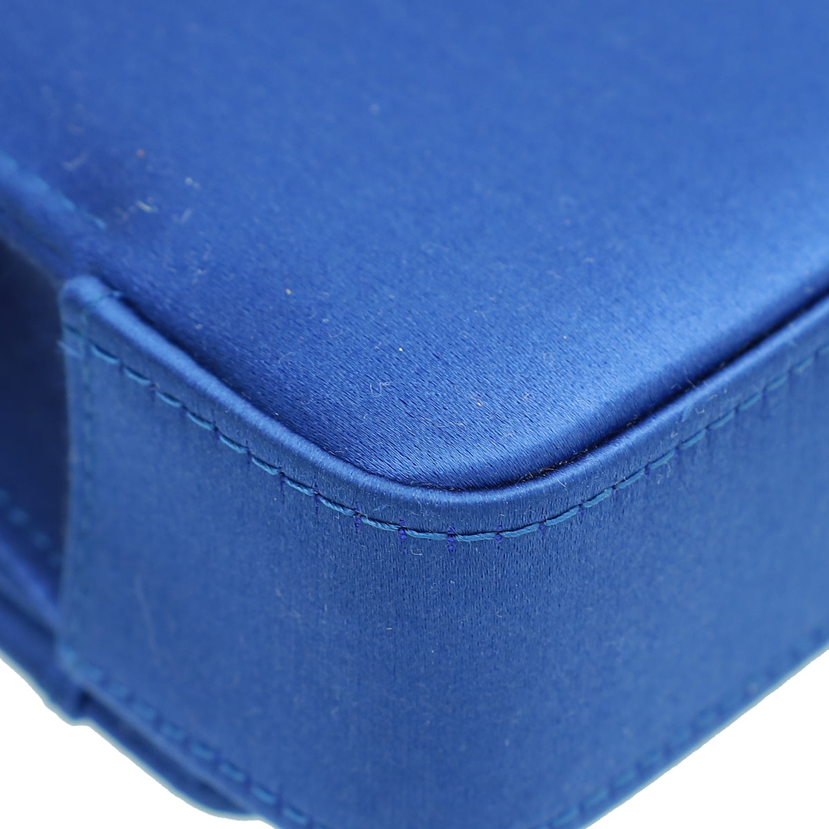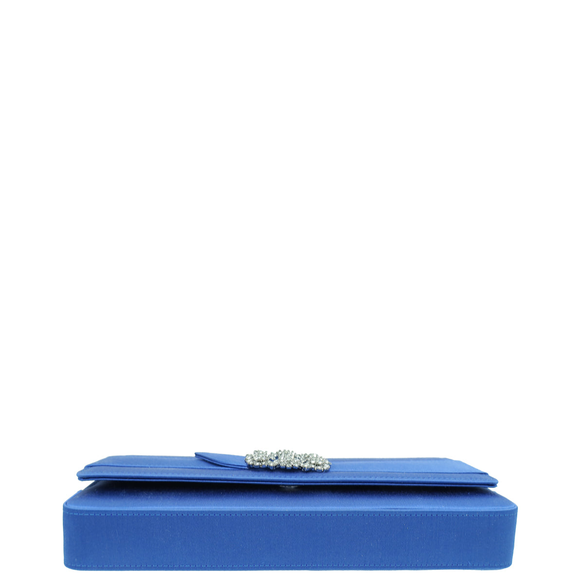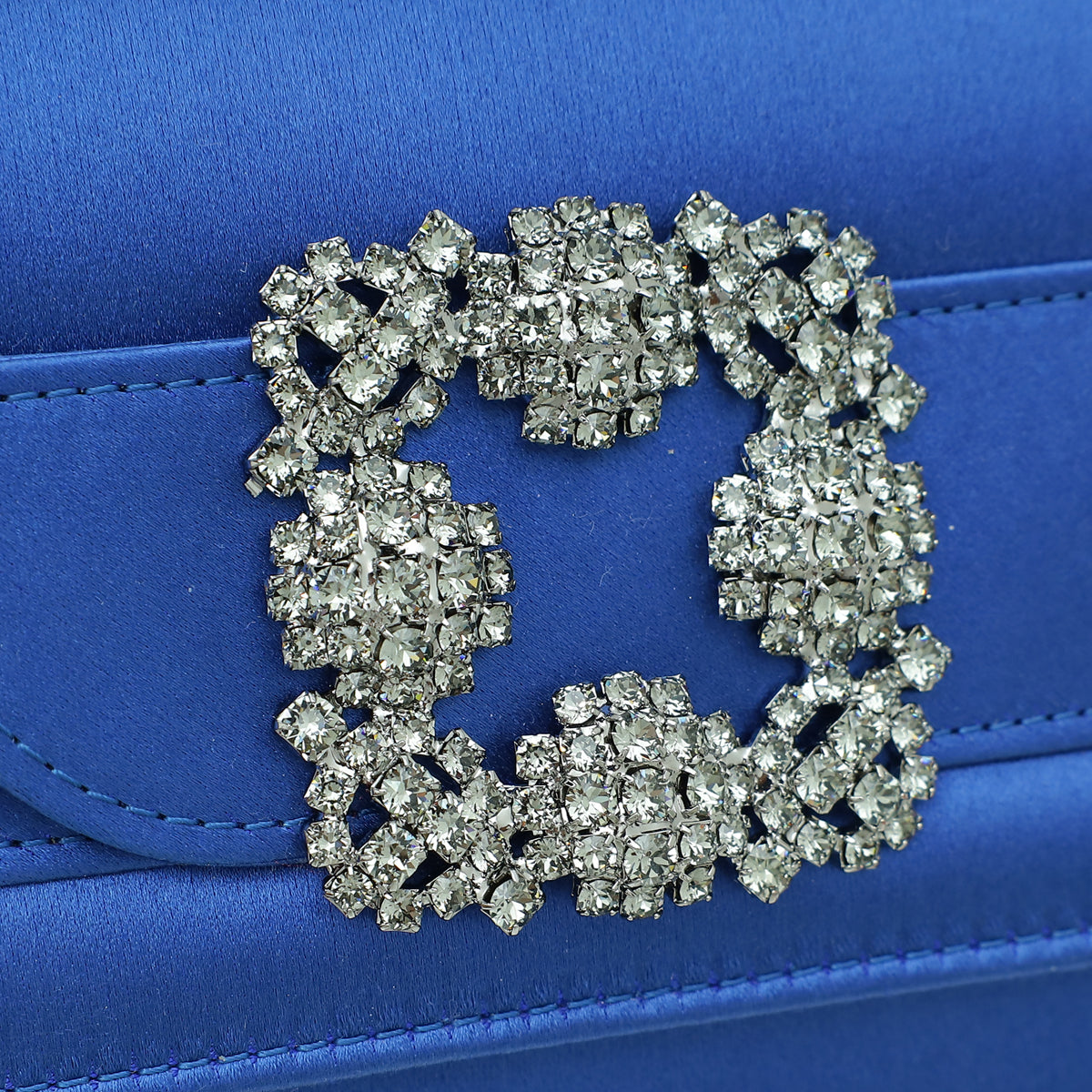 Manolo Blahnik Royal Blue Satin Gothisi Jewel Buckle Clutch