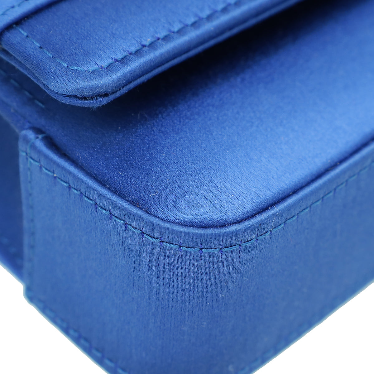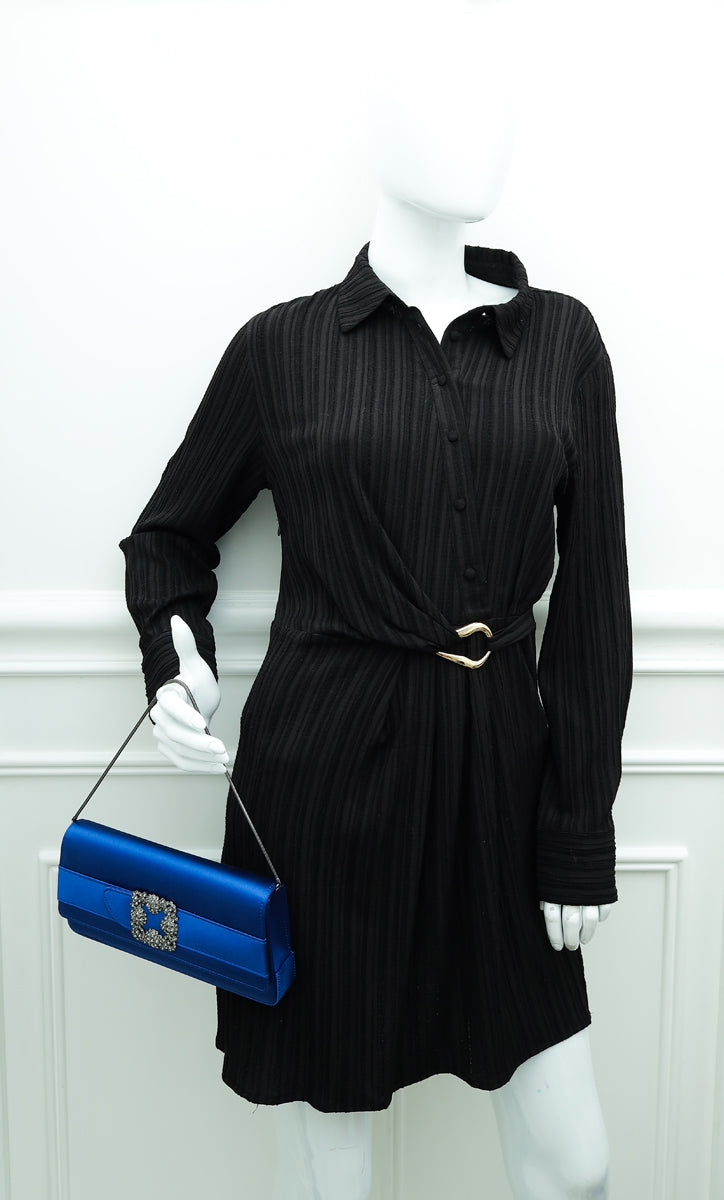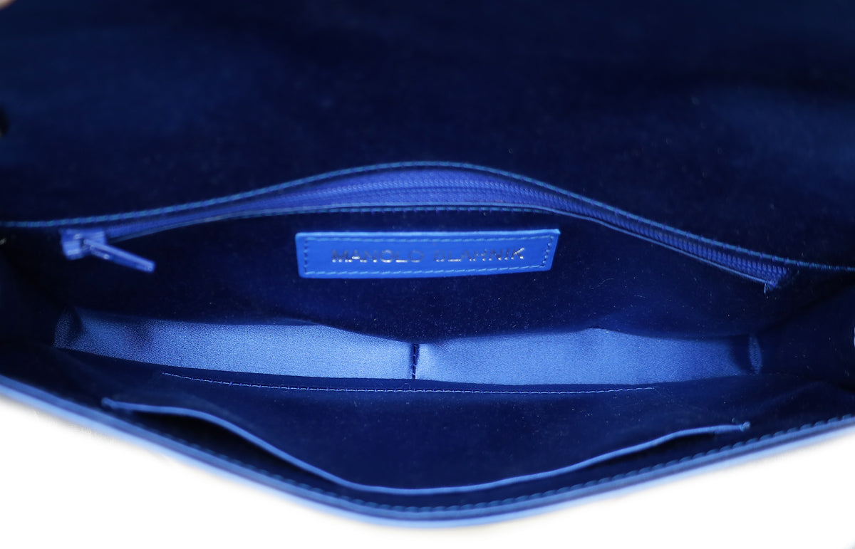 Manolo Blahnik Royal Blue Satin Gothisi Jewel Buckle Clutch