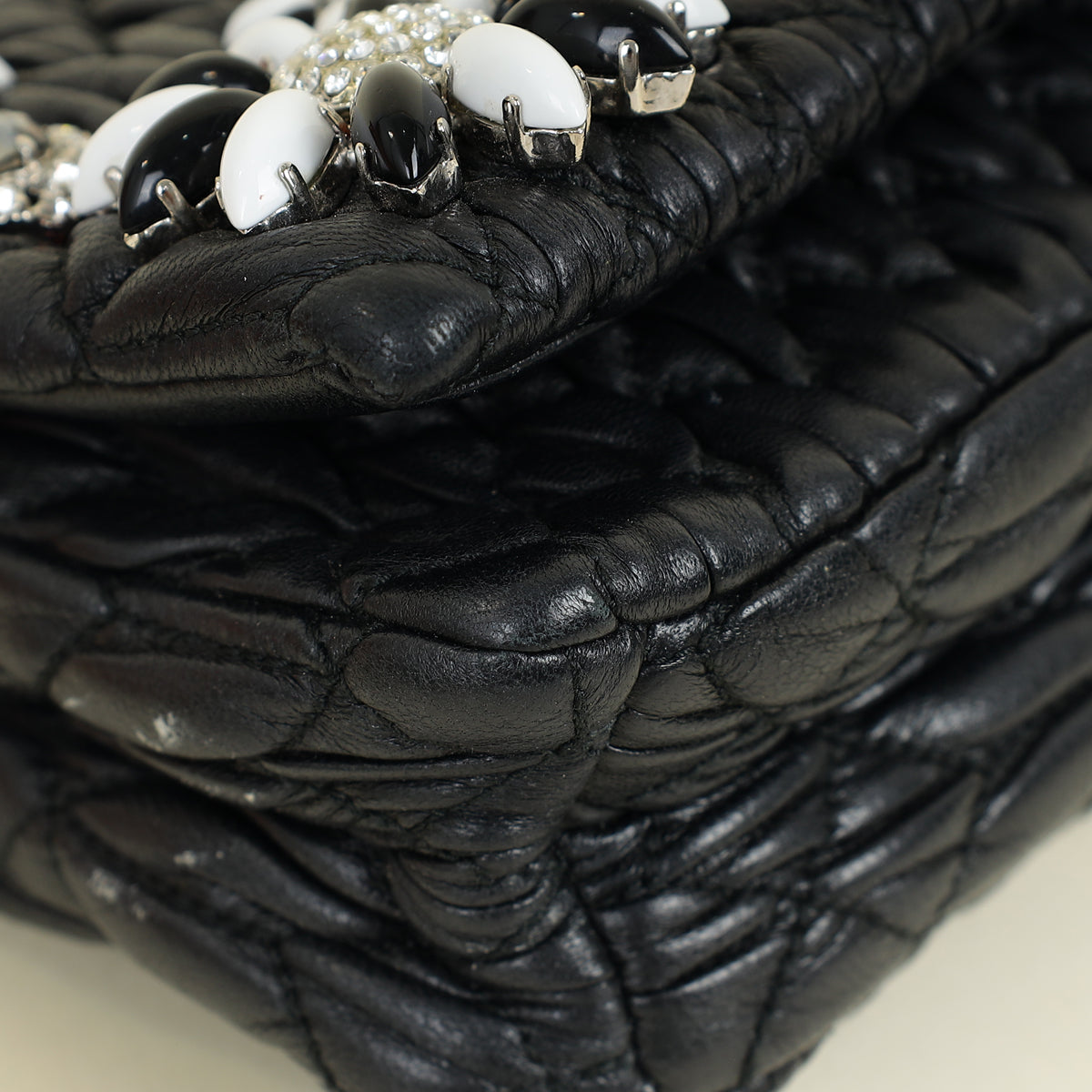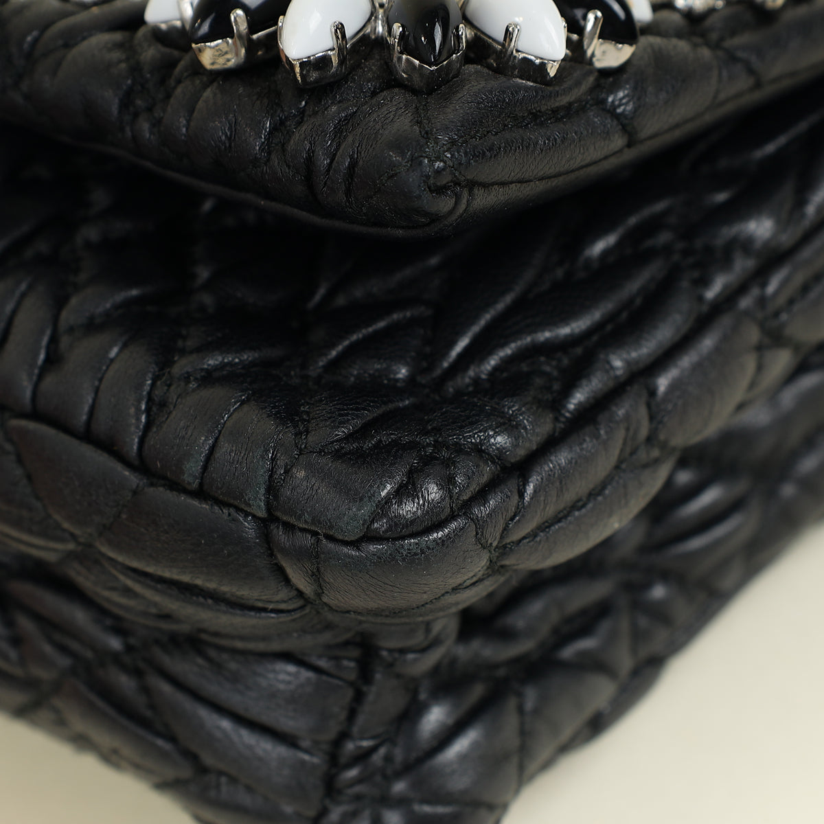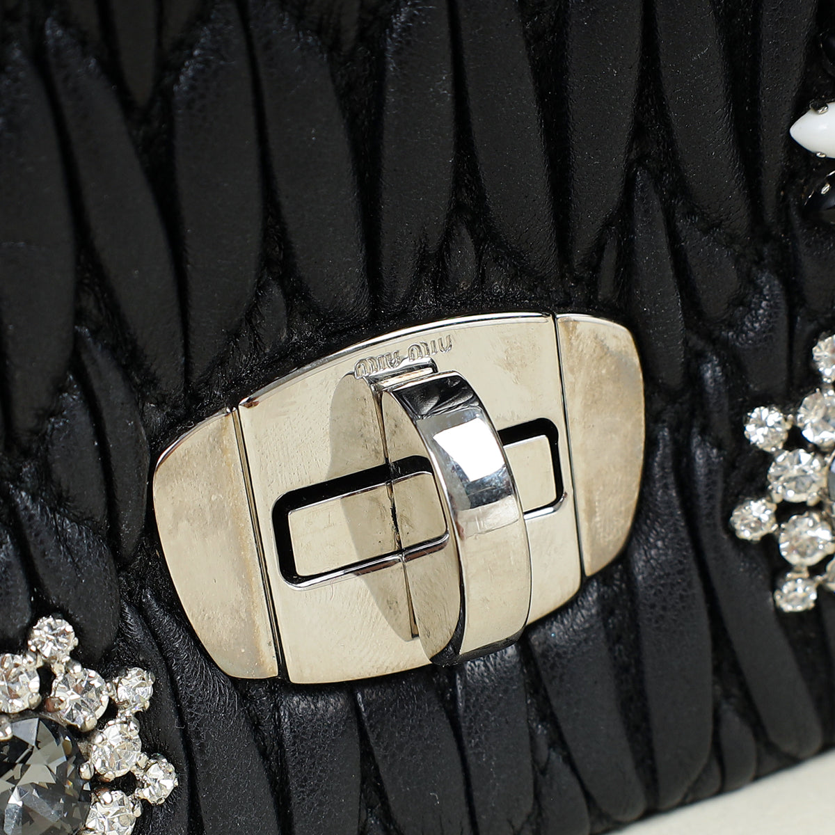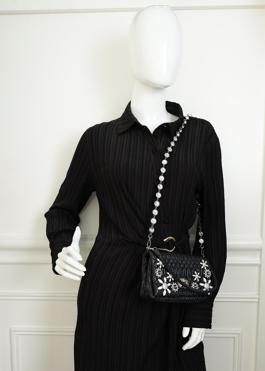 Miu Miu Black Matelasse Crystal Flap Bag
