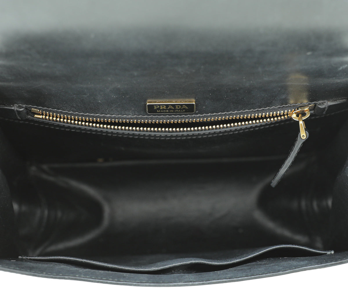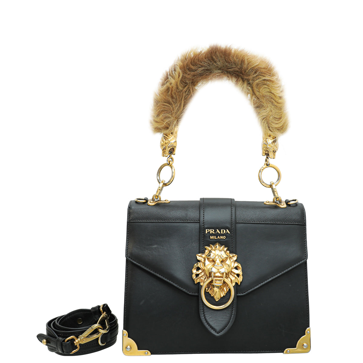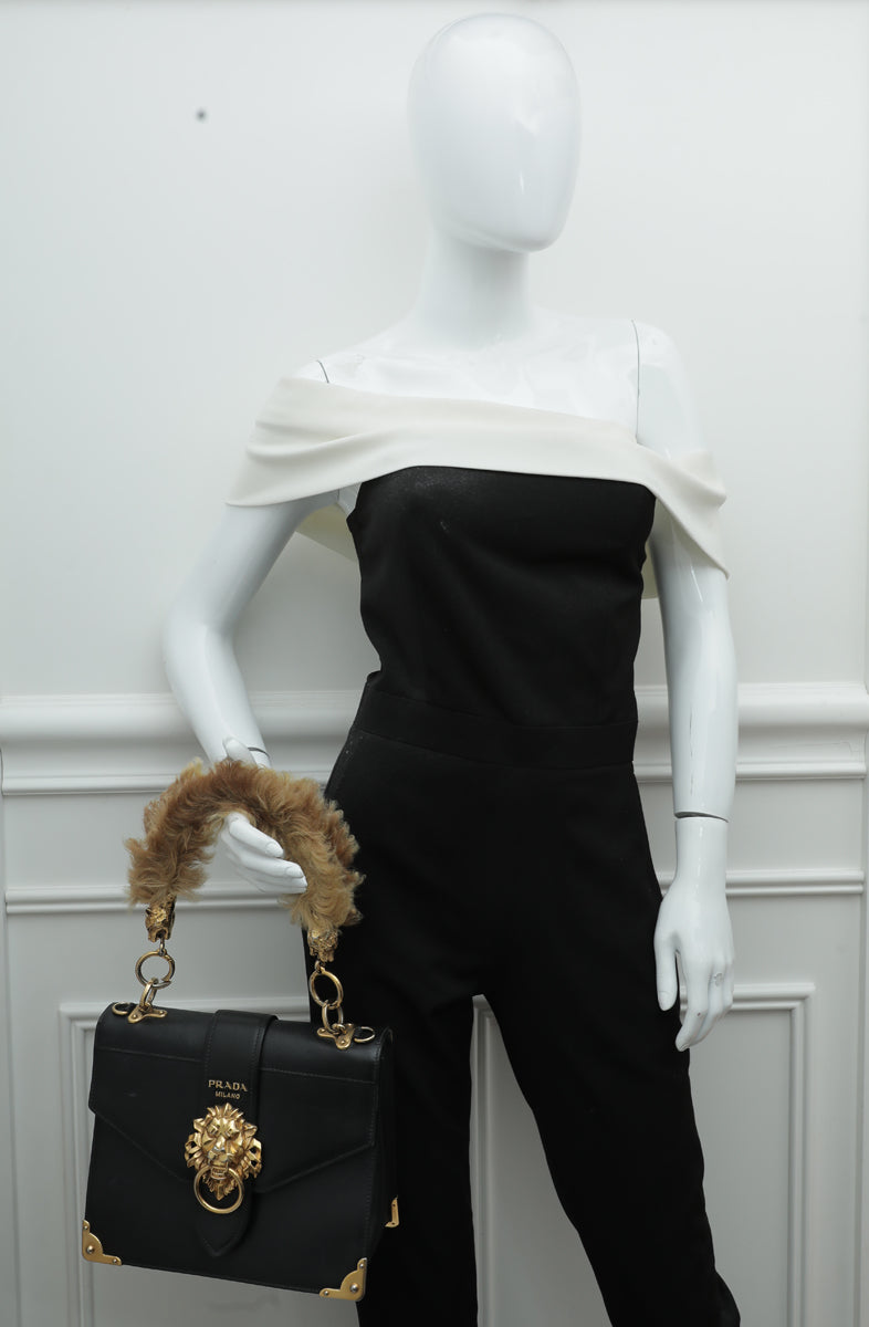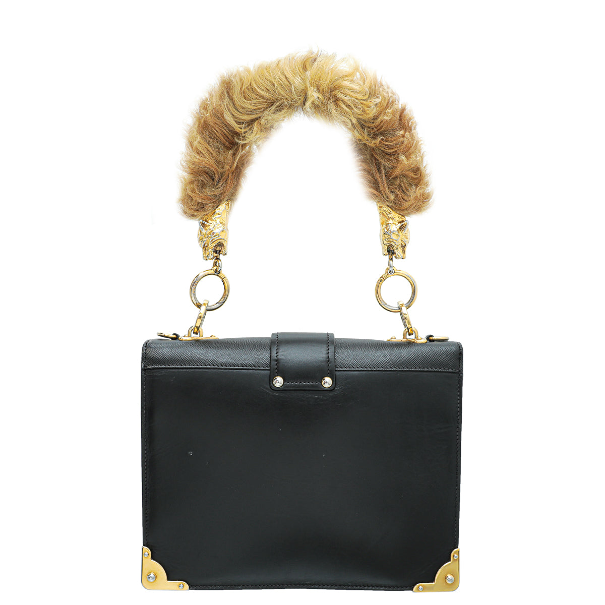 Prada Black Lion's Head Cahier Bag W/Tiger's Head Sherling Top Handle