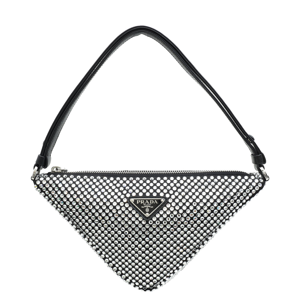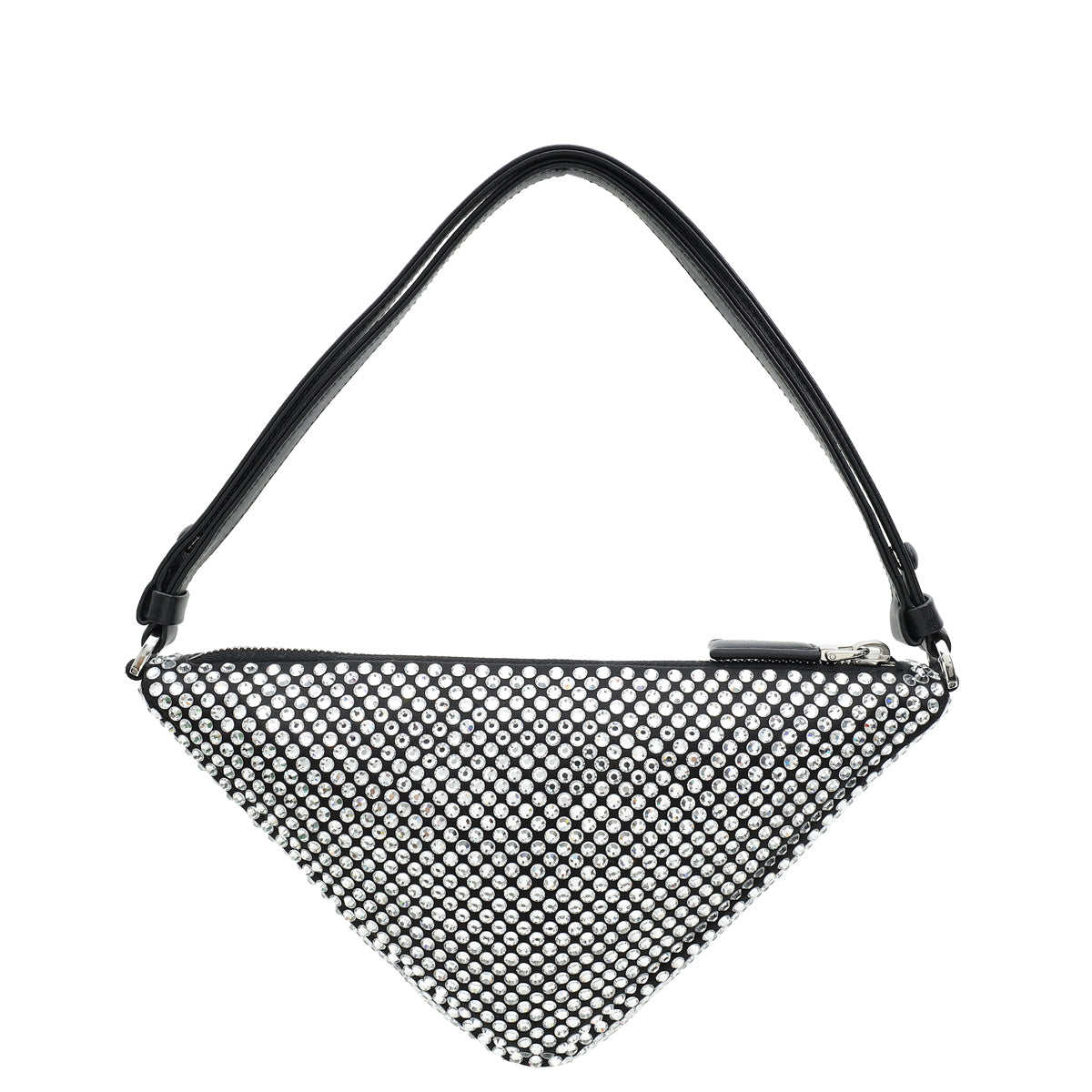 Prada Black Triangle Crystal-Embellished Satin Pouch