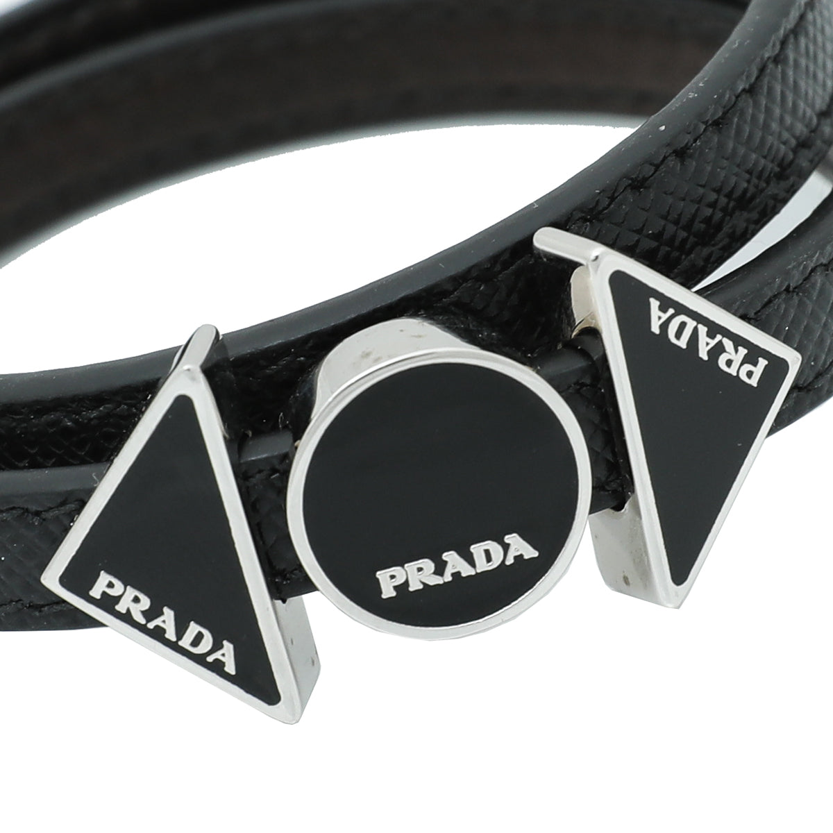 Material: Black Saffiano Leather and Black Enamel with Triangle & Round Details