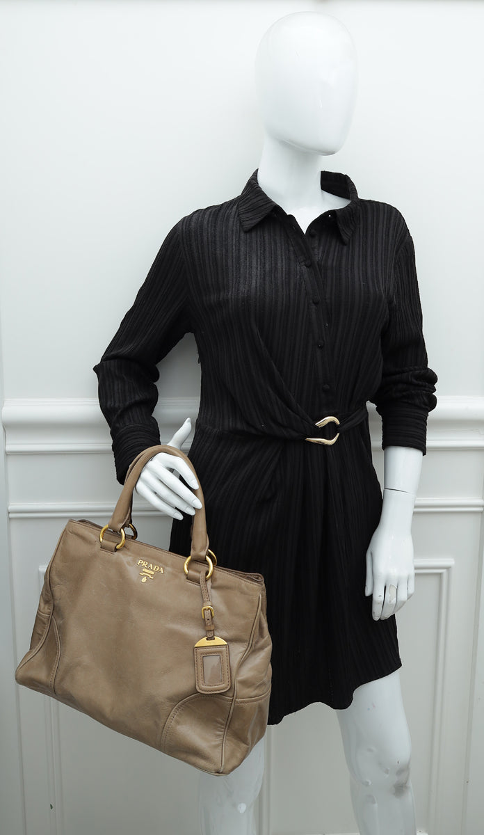 Prada Light Brown Vitello Shine Tote Bag-Prada-THE CLOSET