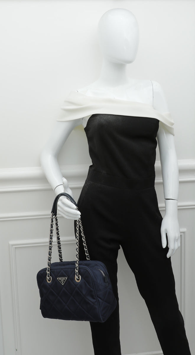Prada Navy Blue Nylon Quilted Shoulder Bag