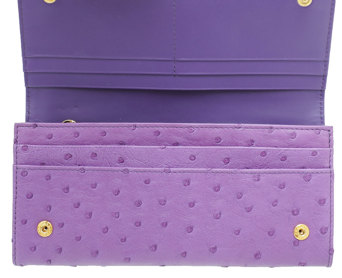 Prada Purple Ostrich Continental Long Wallet
