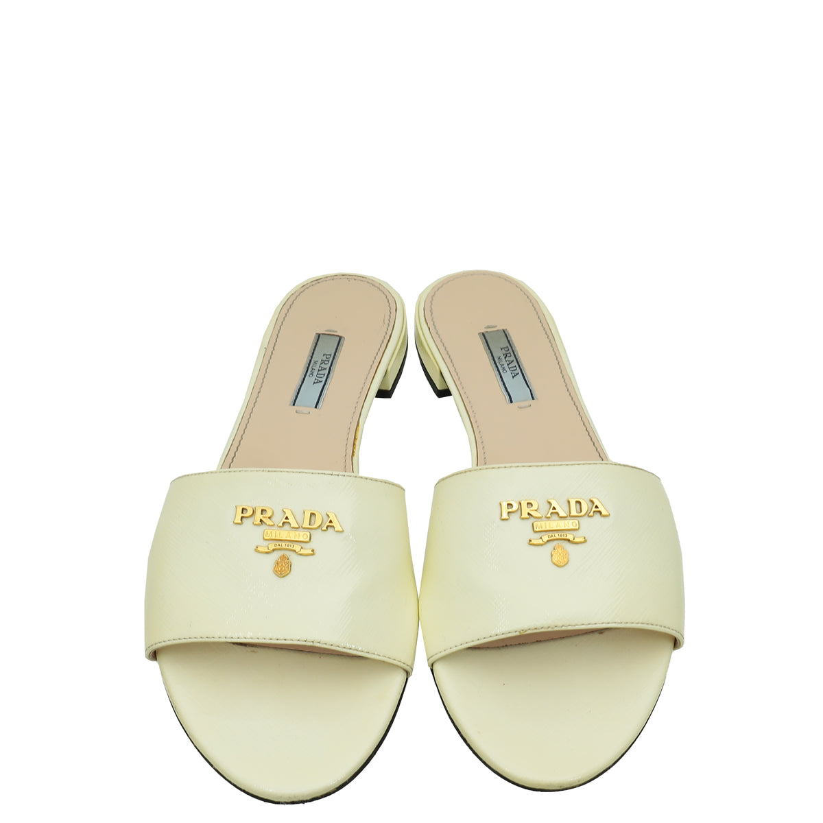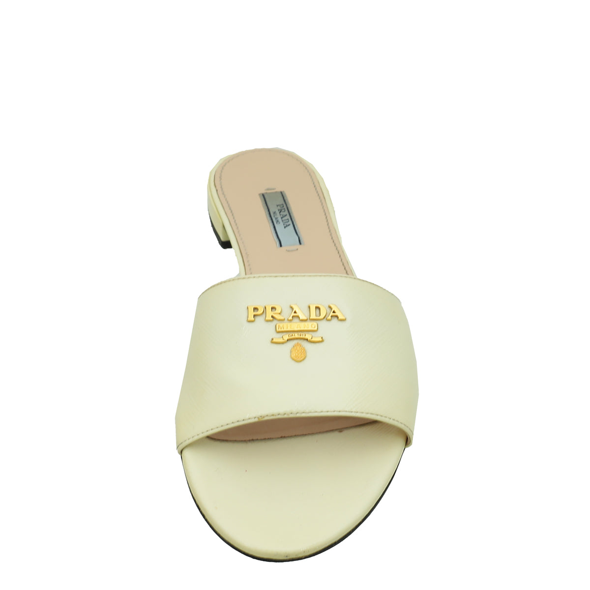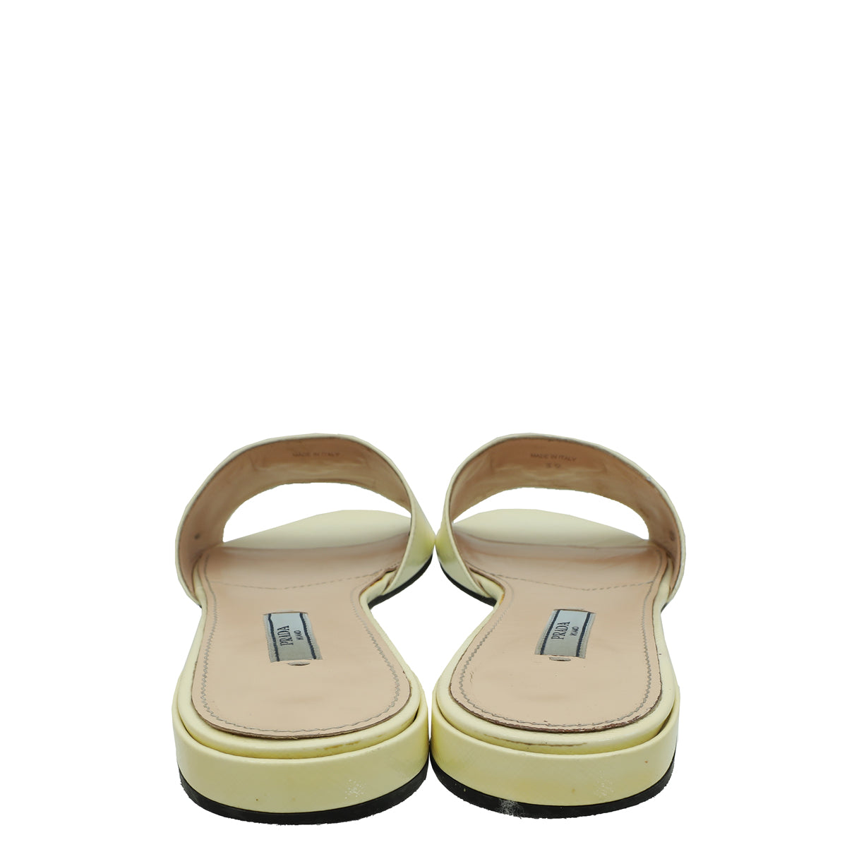 Prada Vernice Off White Logo Slide Sandals 39