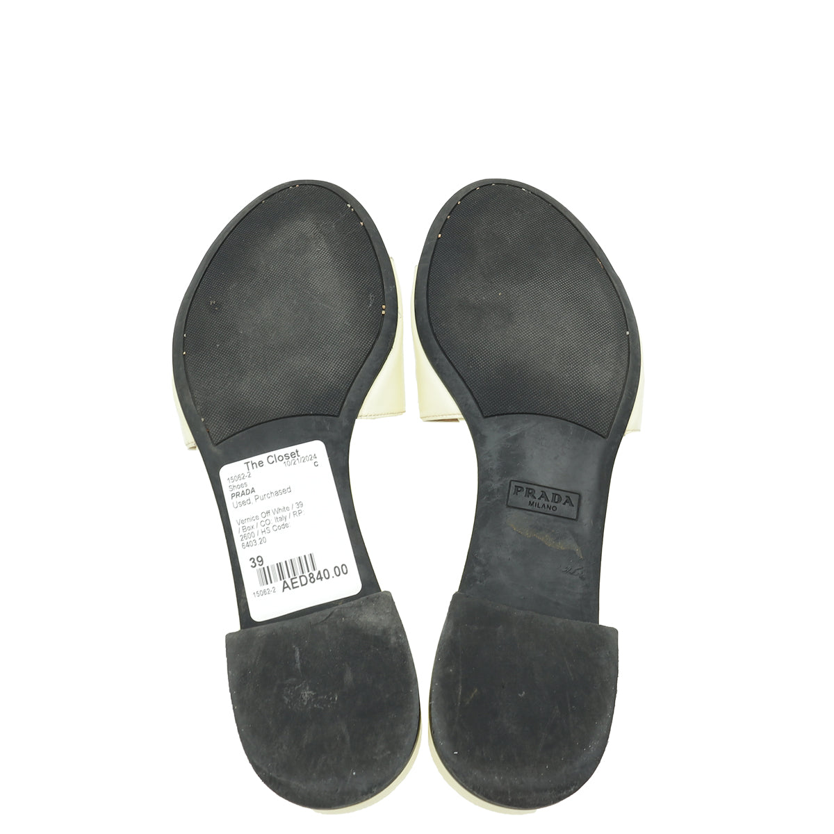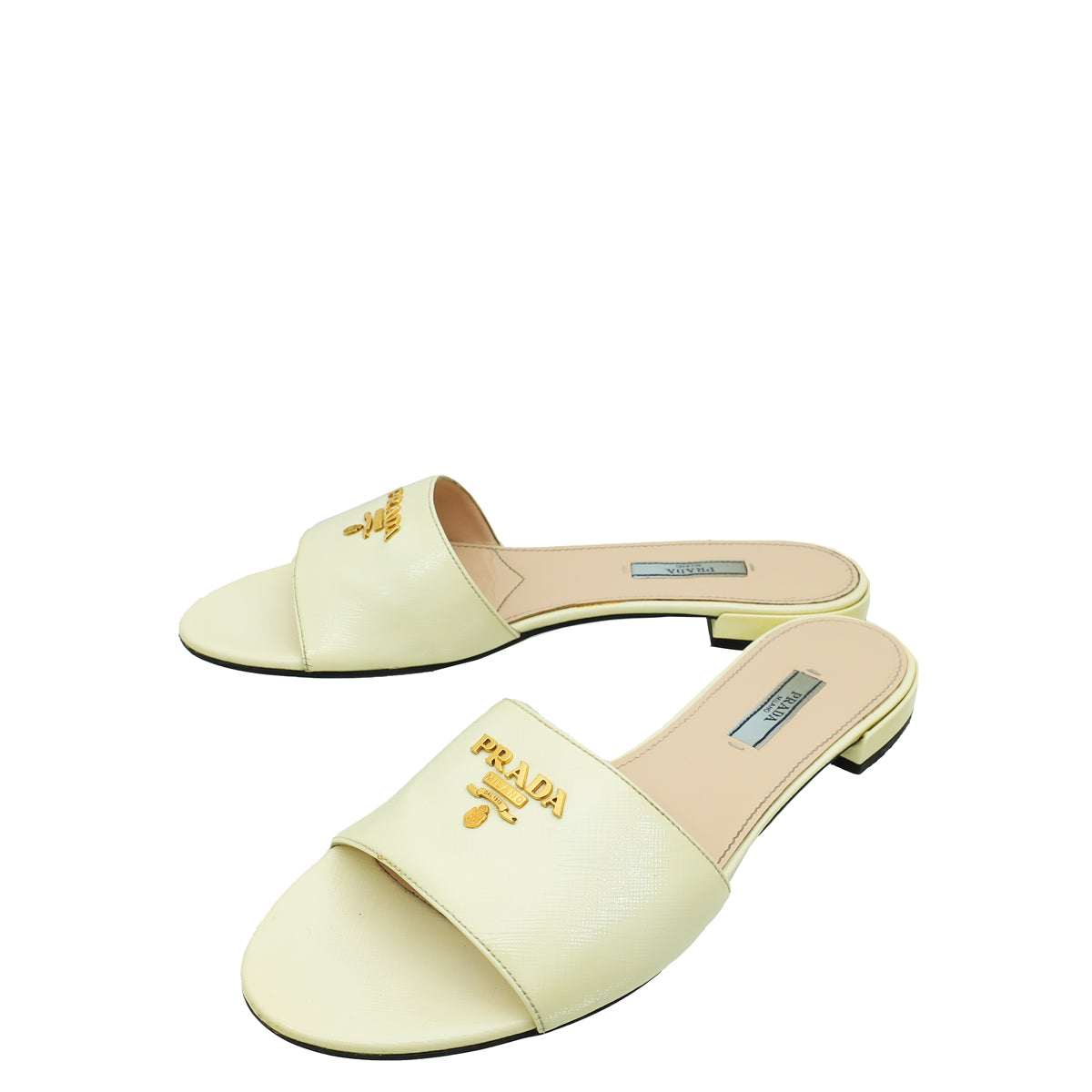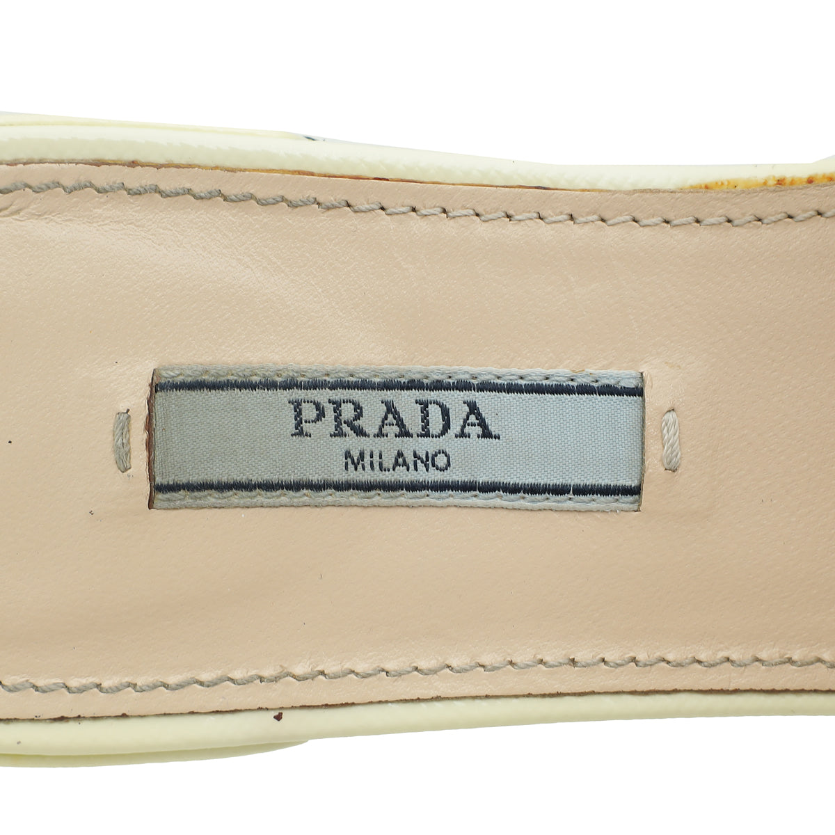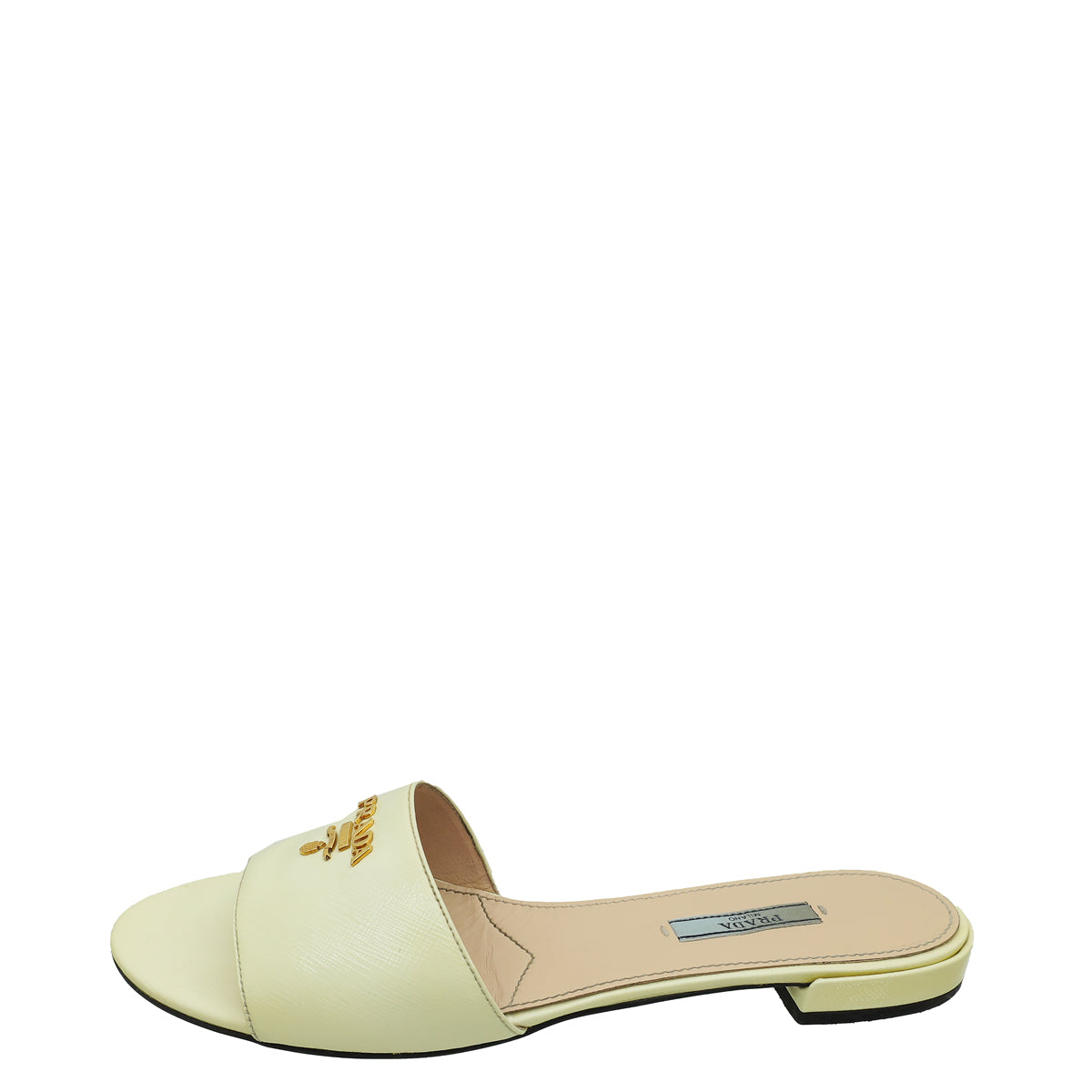 Prada Vernice Off White Logo Slide Sandals 39
