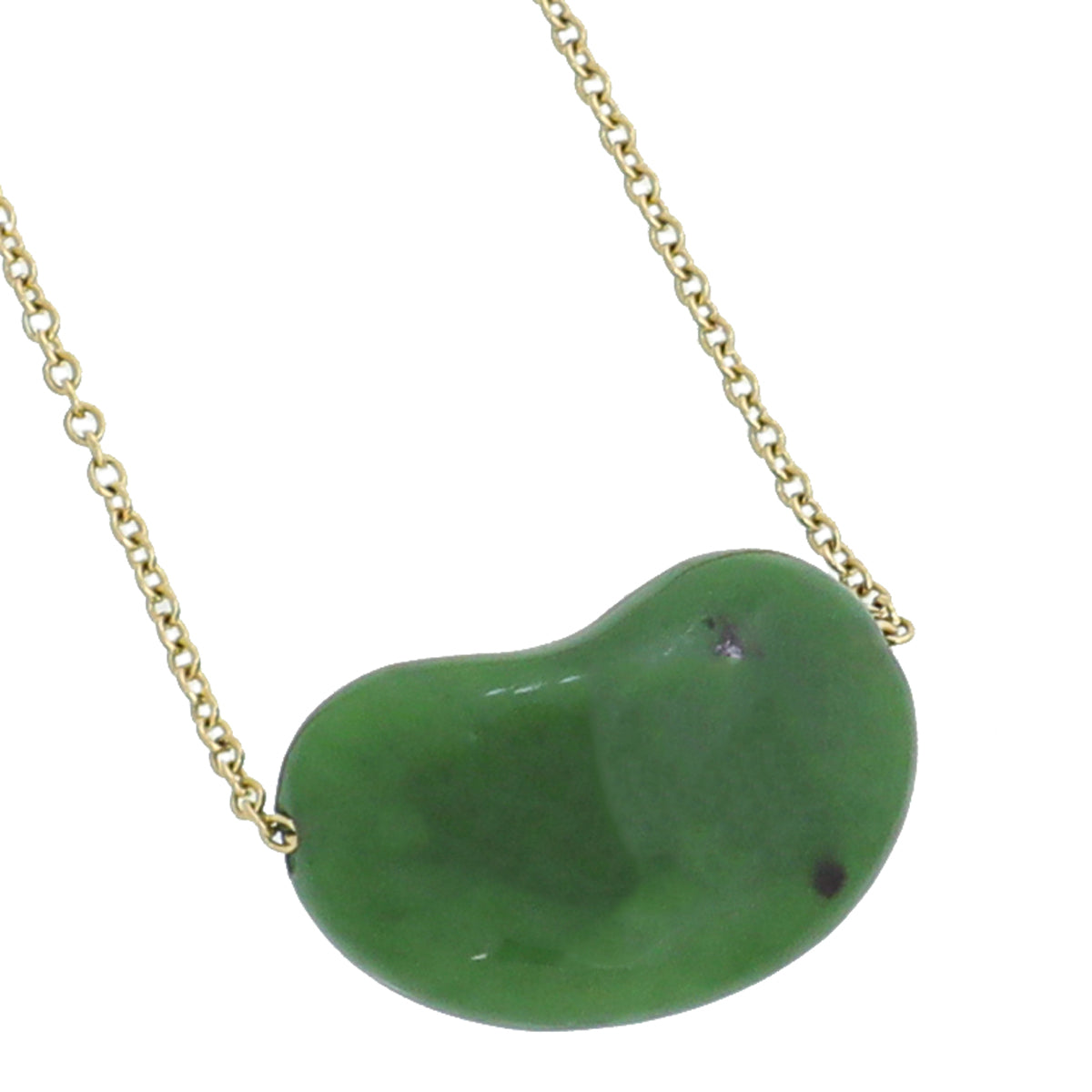 Tiffany & Co 18K Yellow Gold Green Jade Elsa Peretti Bean 18mm Pendant Necklace