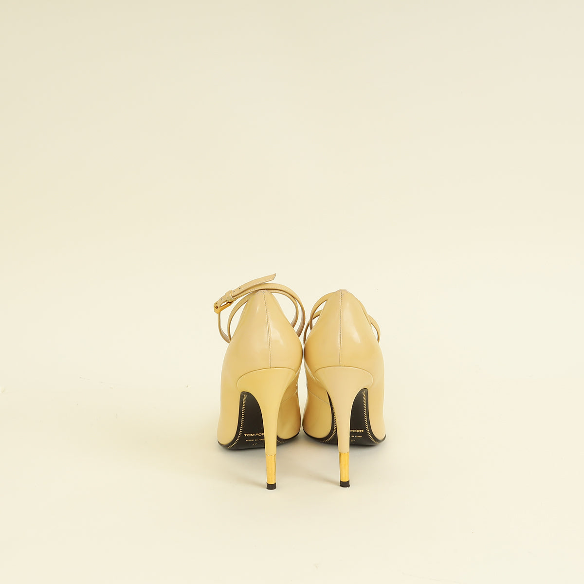 Tom Ford Beige Padlock Ankle Wrap Pump 37