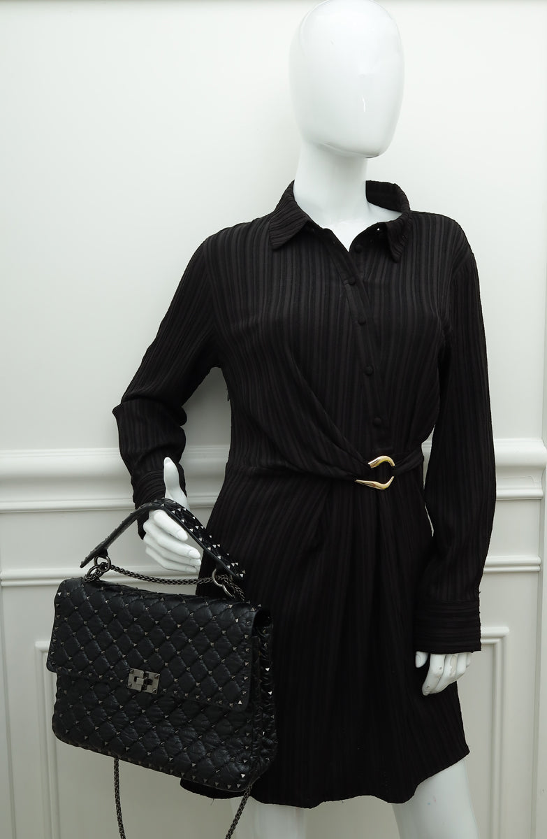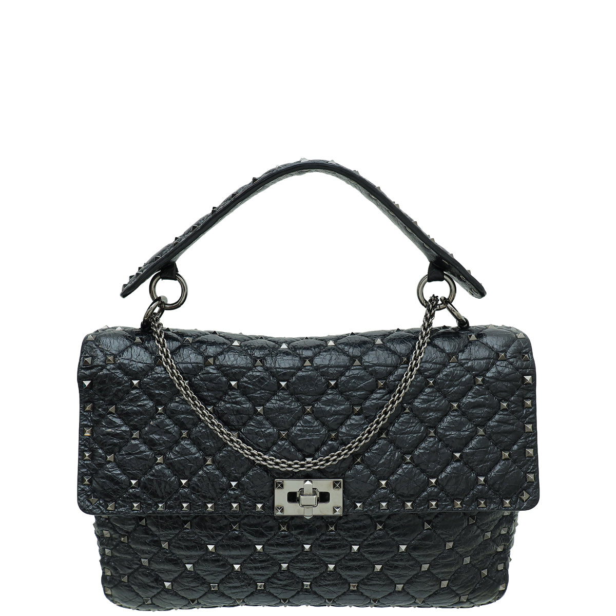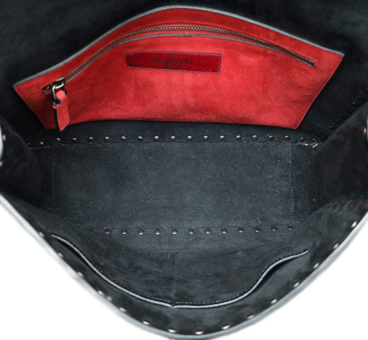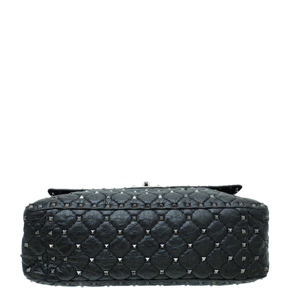 Valentino Black Spike Rockstud Flap Large Shoulder Bag