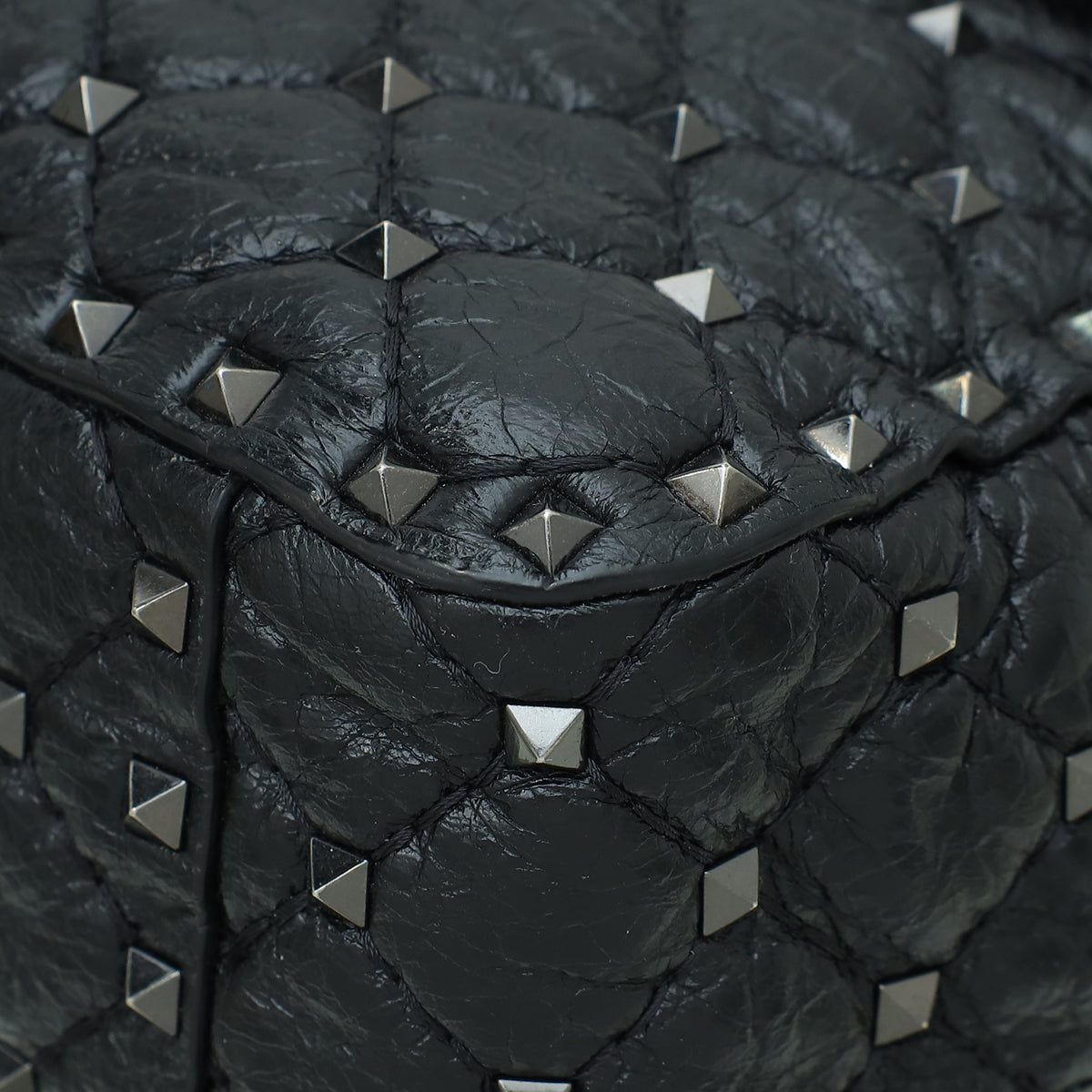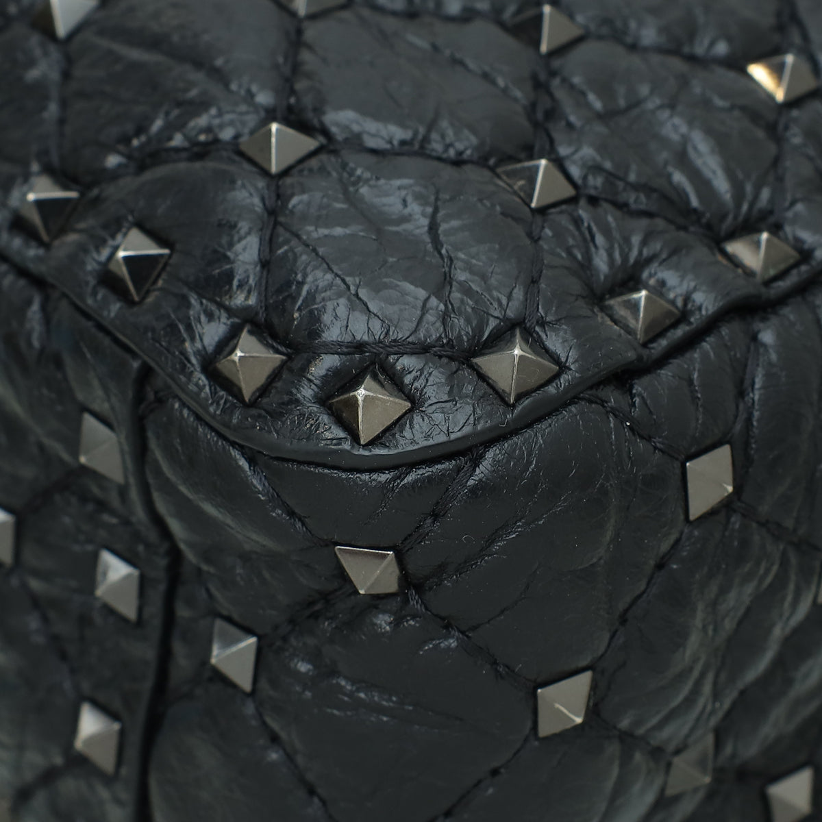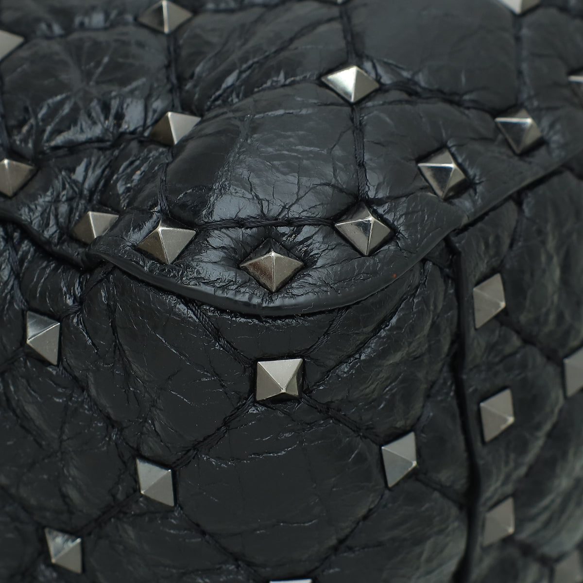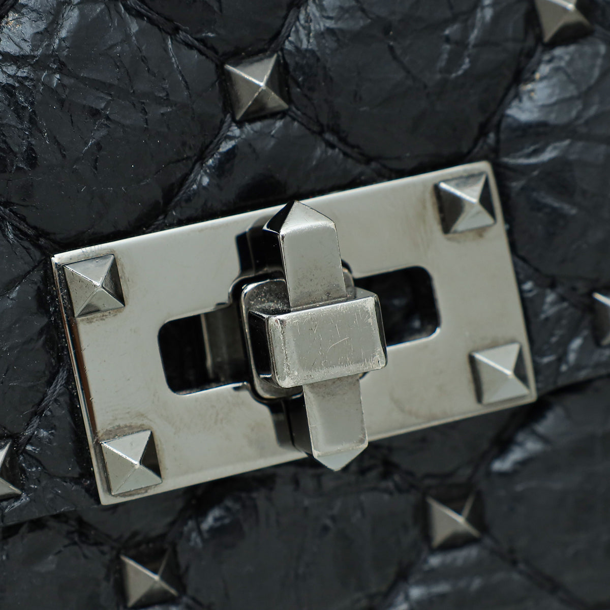 Valentino Black Spike Rockstud Flap Large Shoulder Bag