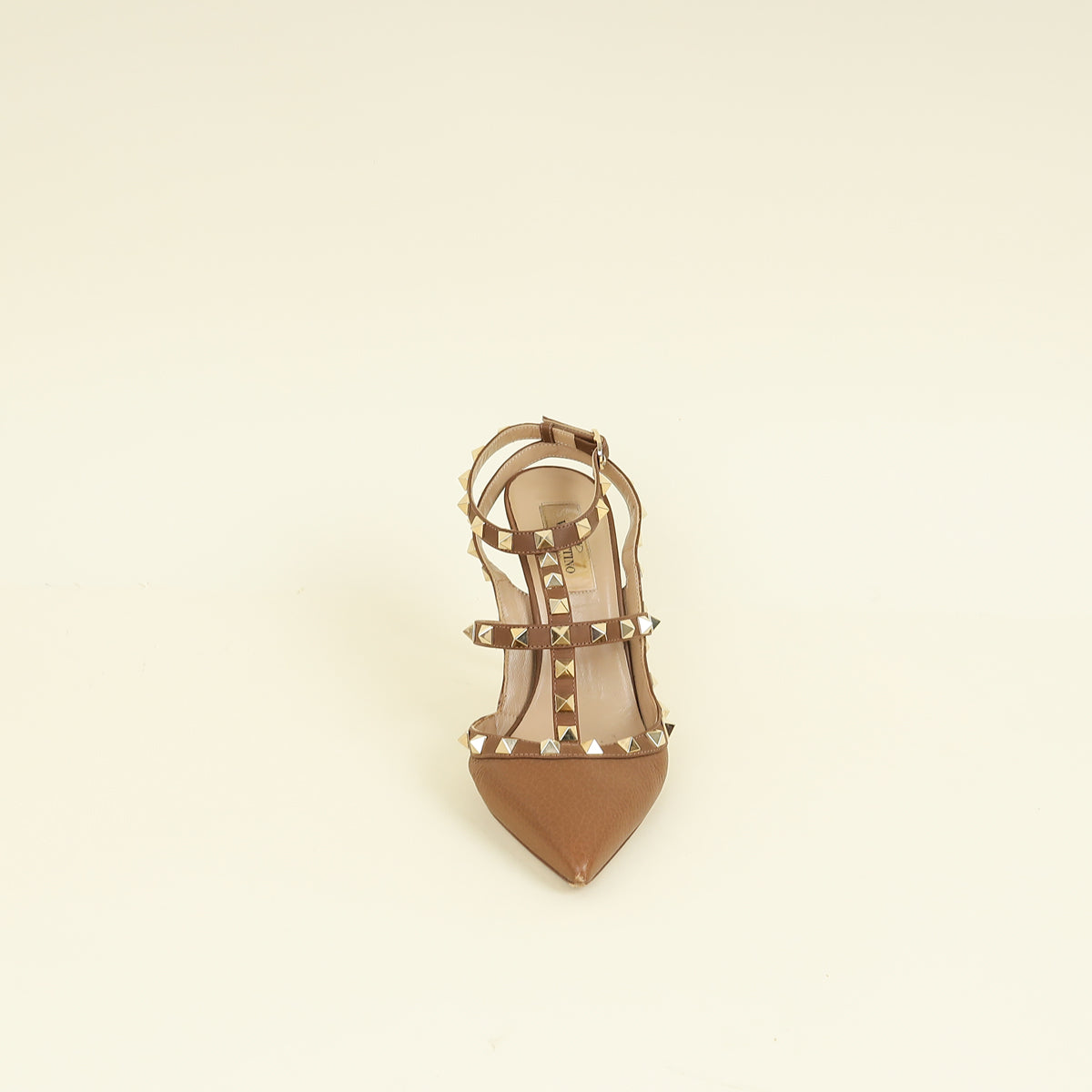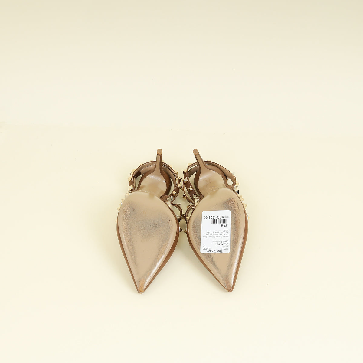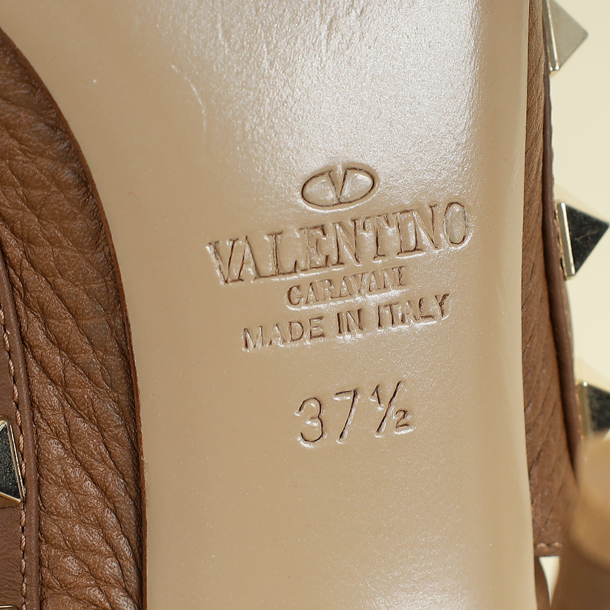 Valentino Brown Rockstud Caged Ankle Strap Pump 37.5