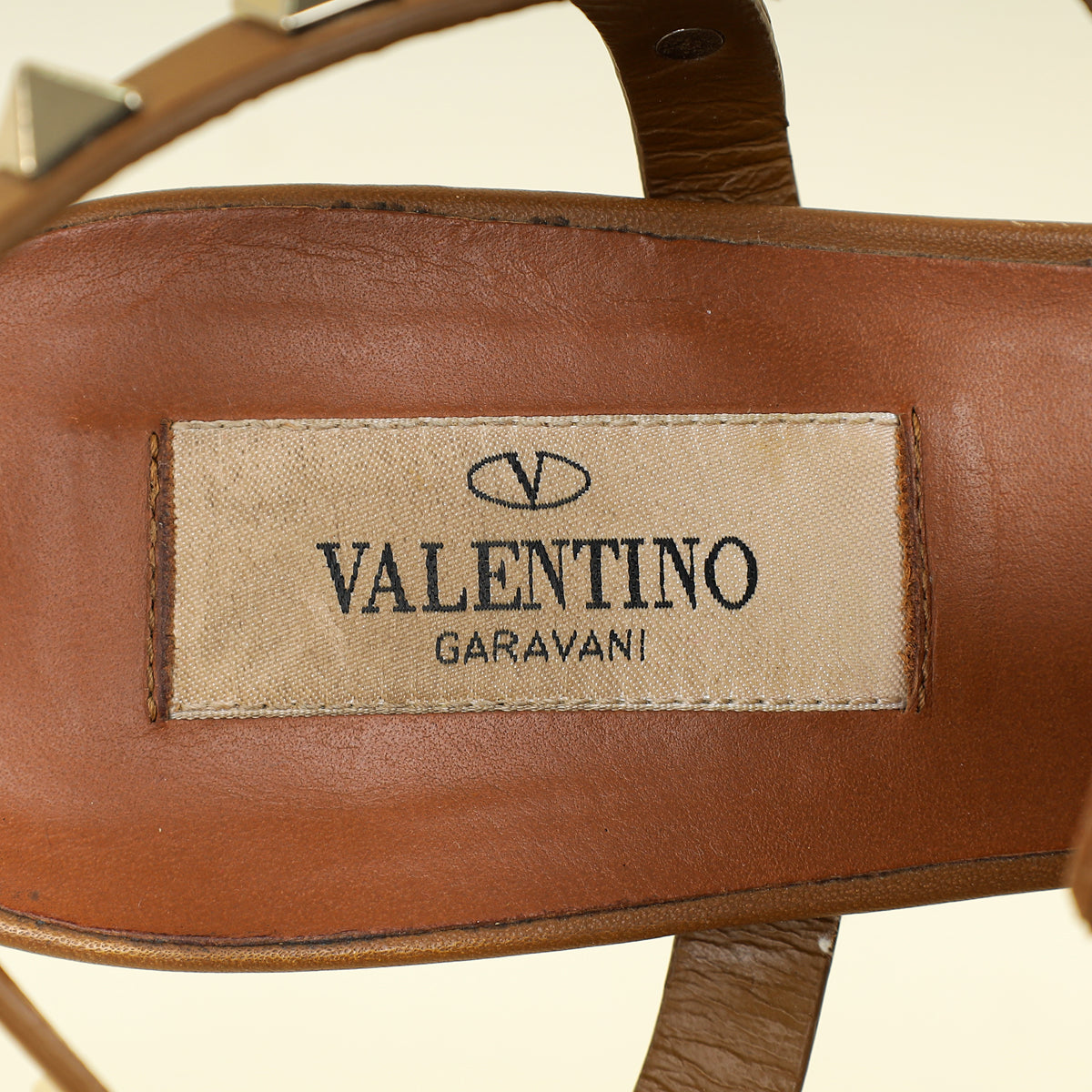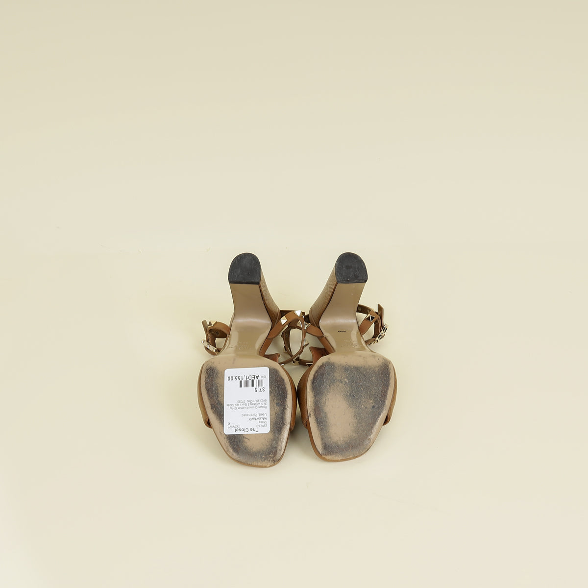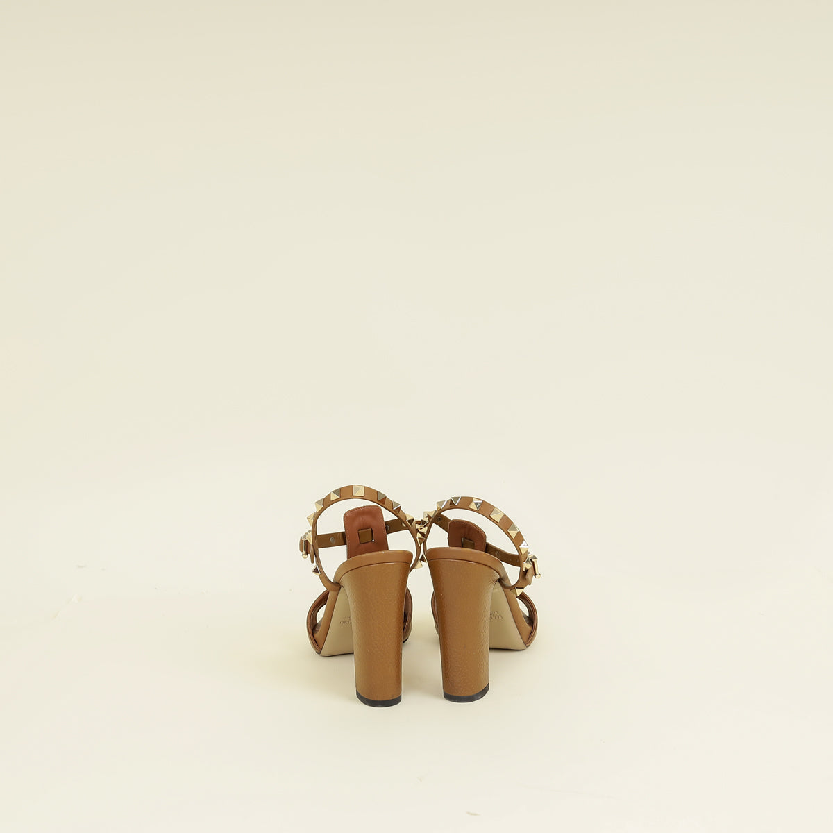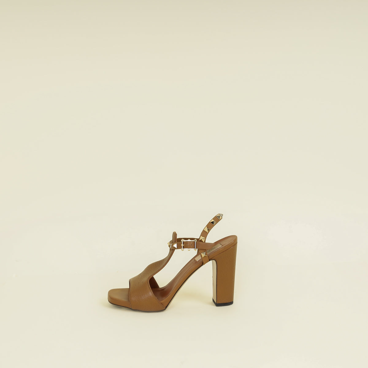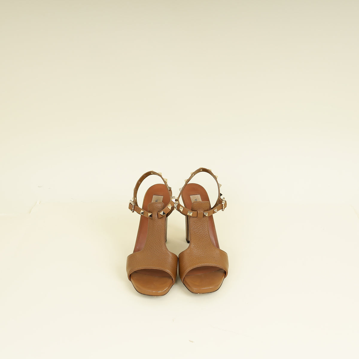 Valentino Brown T Strap Rockstud Block Sandals 37.5
