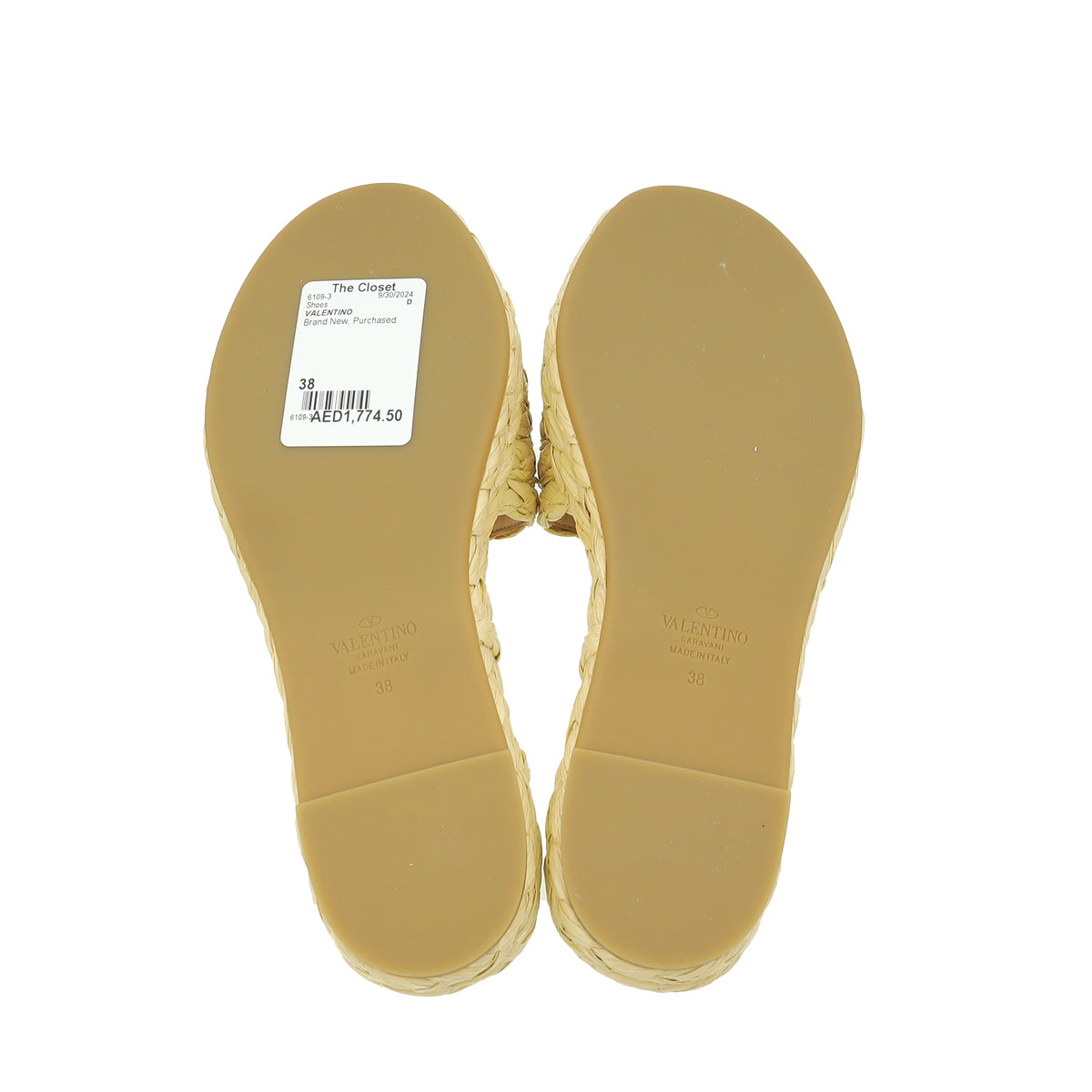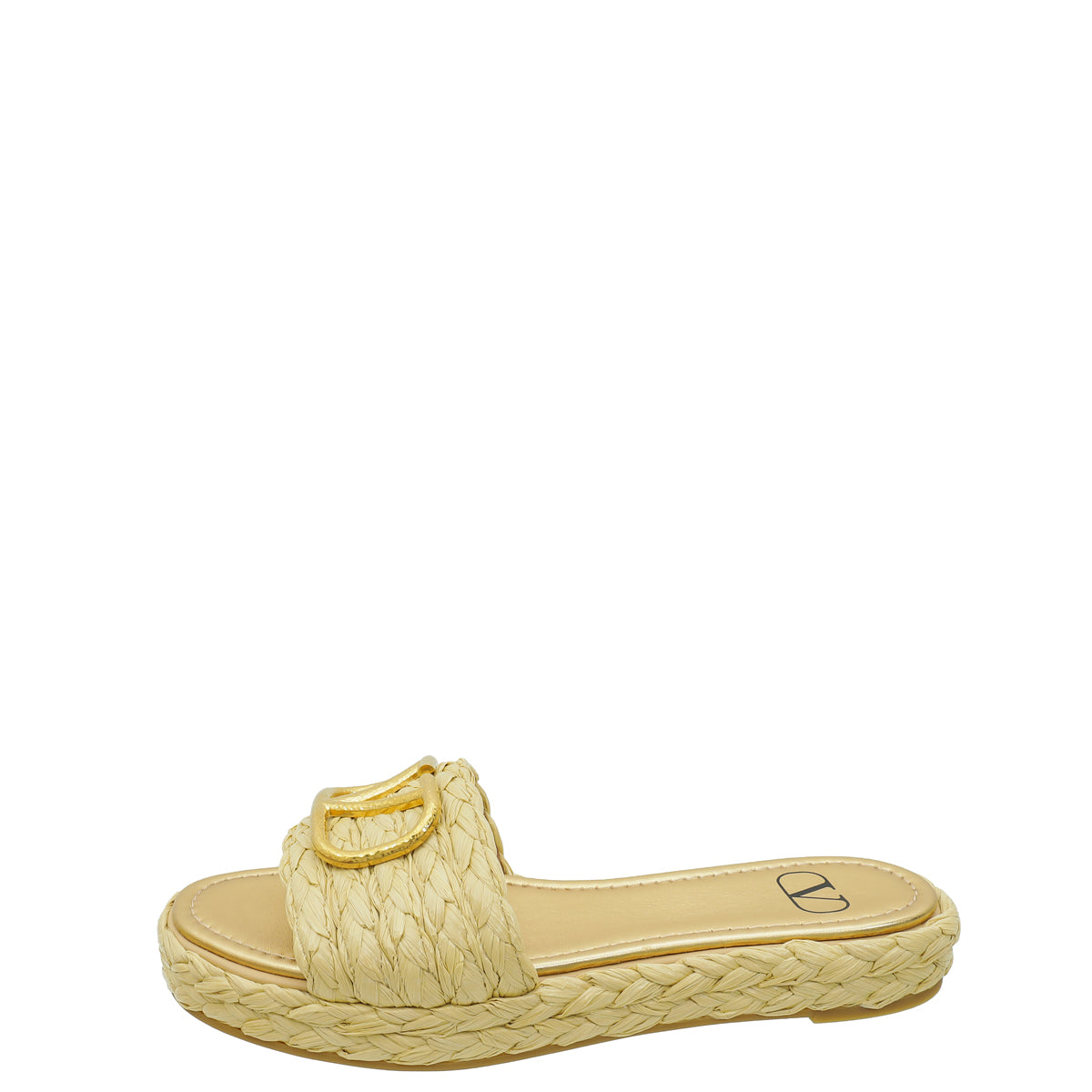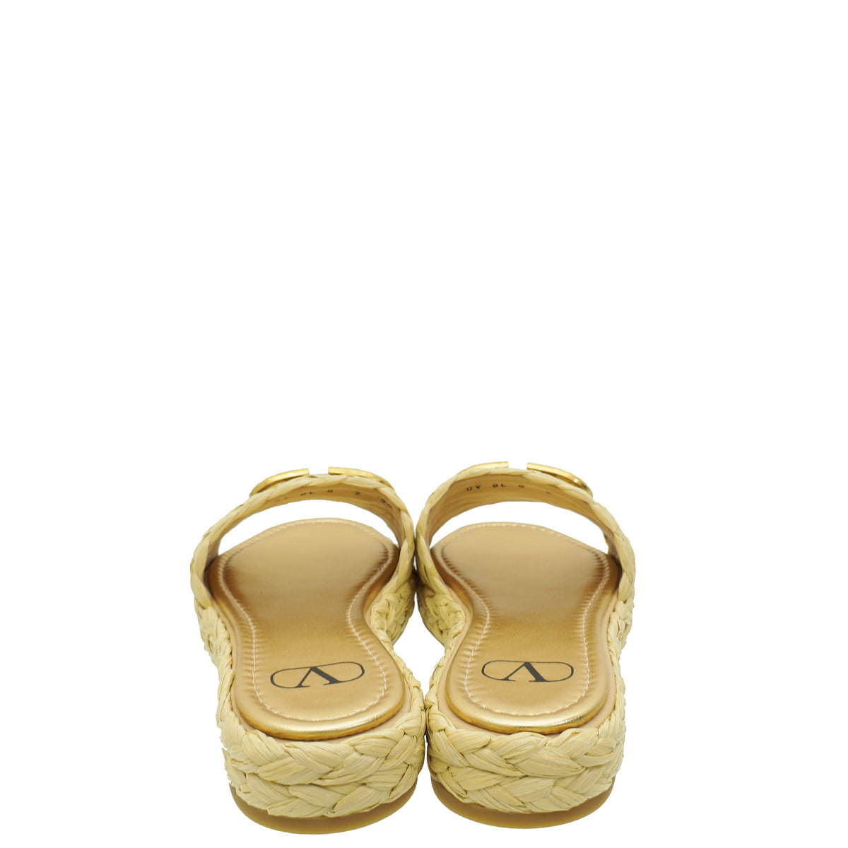 Valentino Natural Vlogo Raffia Vlogo Espadrille 5mm Flat Slide Sandals 38