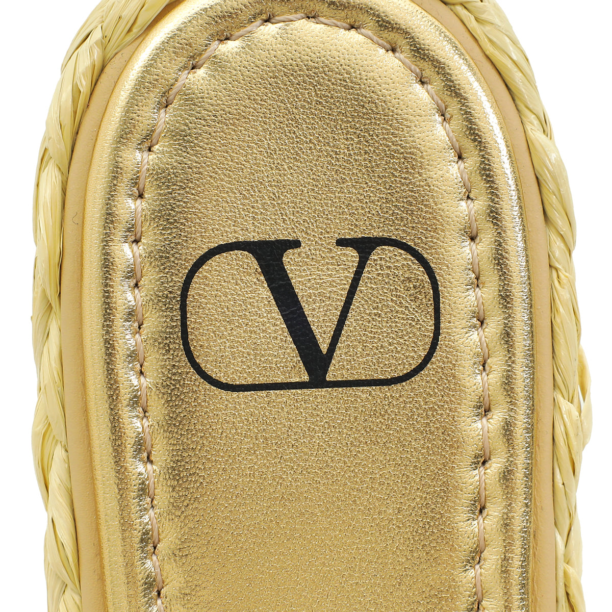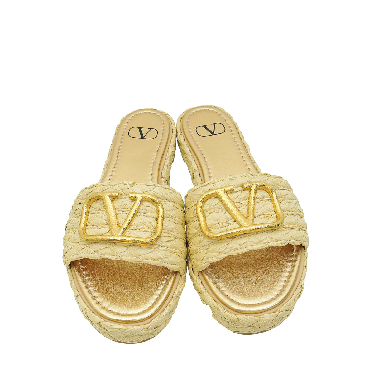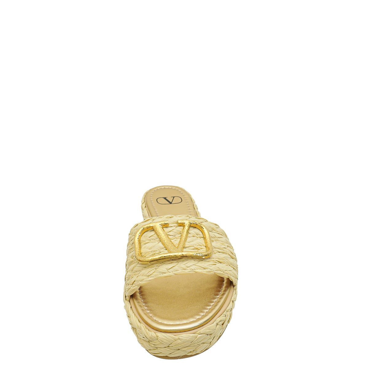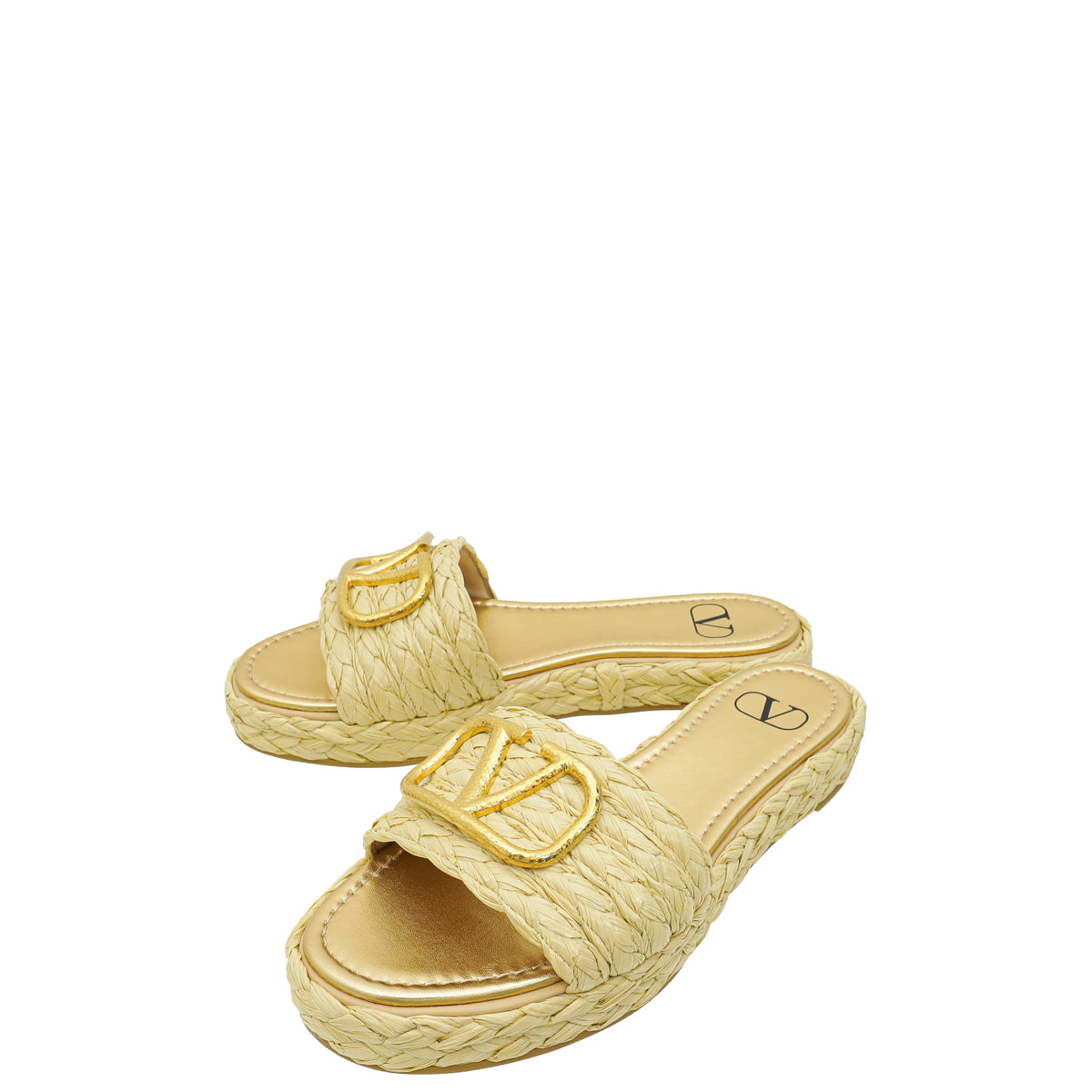 Valentino Natural Vlogo Raffia Vlogo Espadrille 5mm Flat Slide Sandals 38