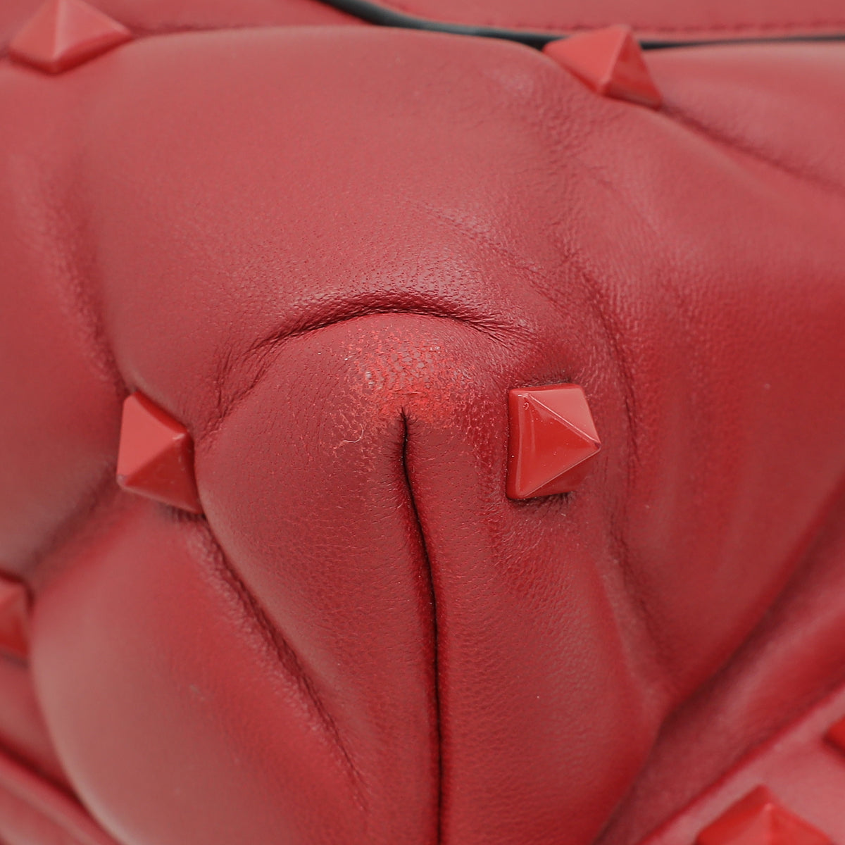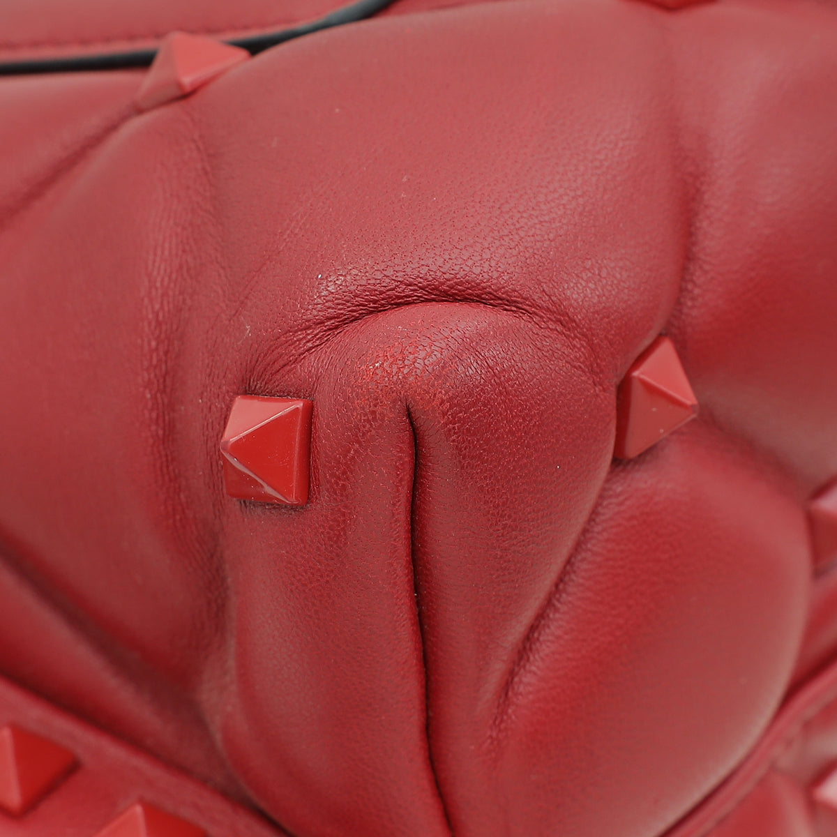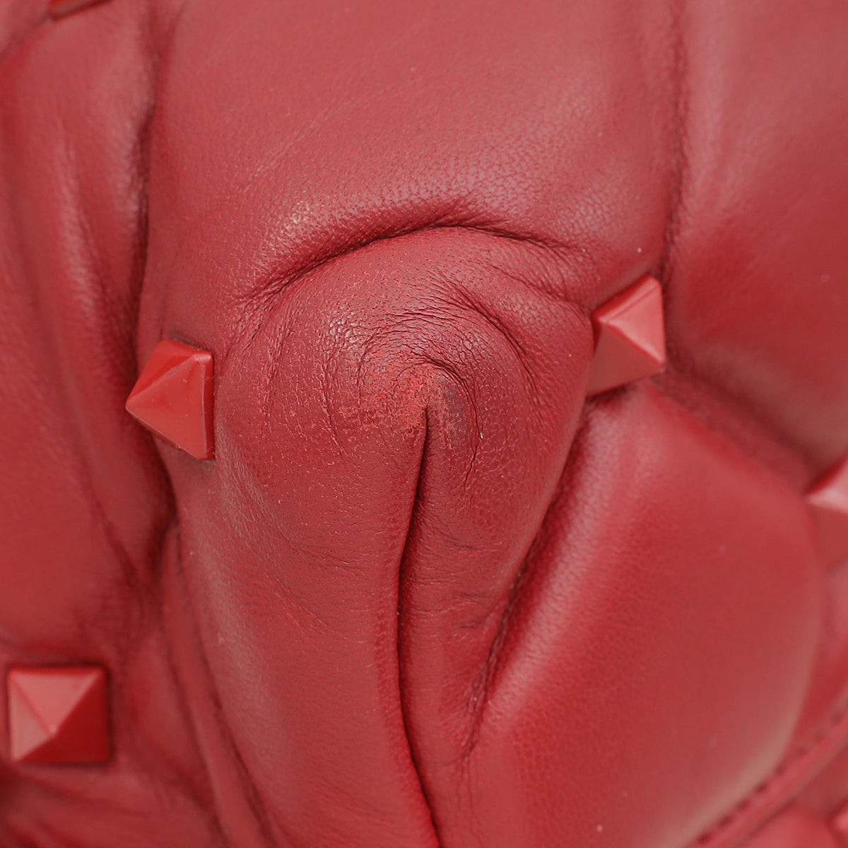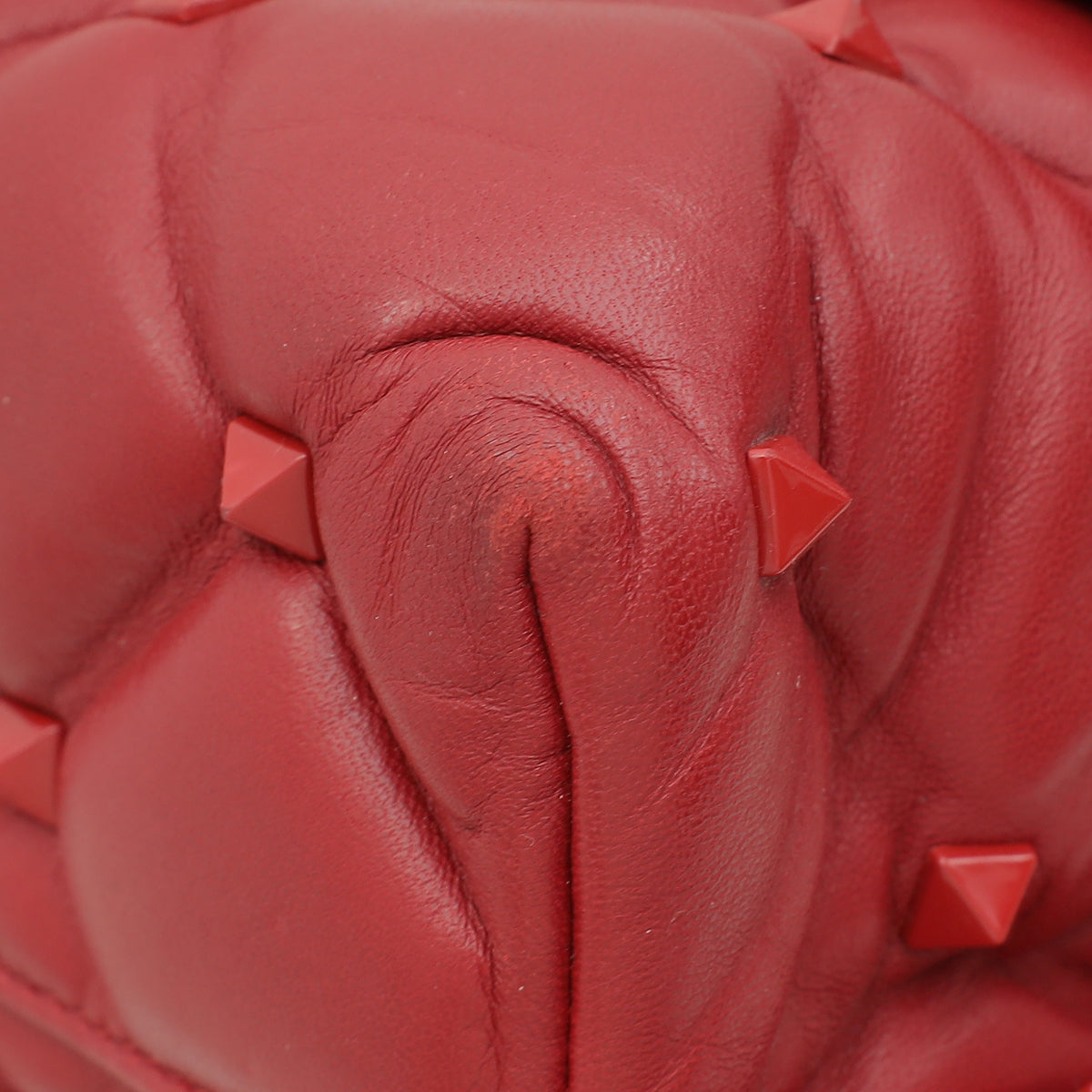 Material: Red Quilted Lambskin Leather with Pyramid Studs