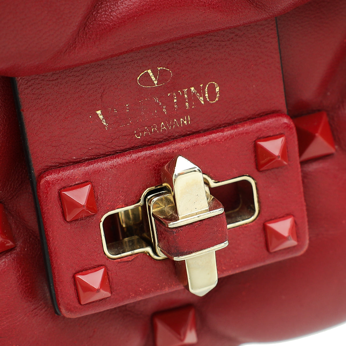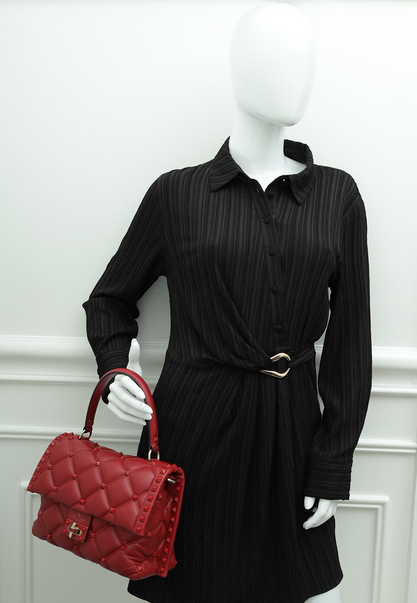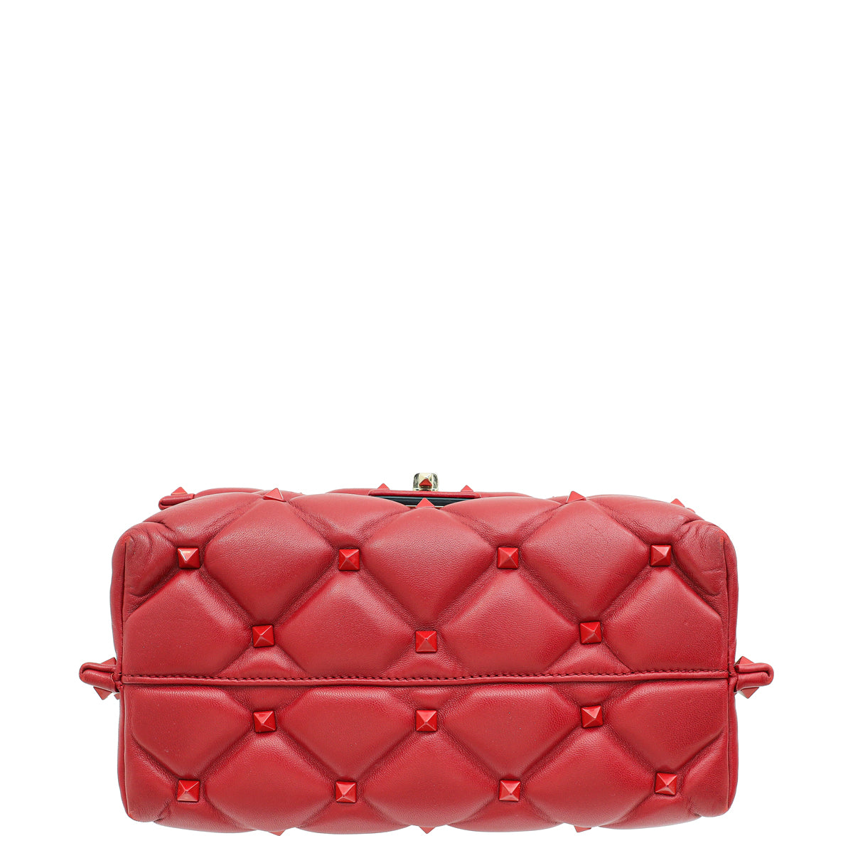 Material: Red Quilted Lambskin Leather with Pyramid Studs