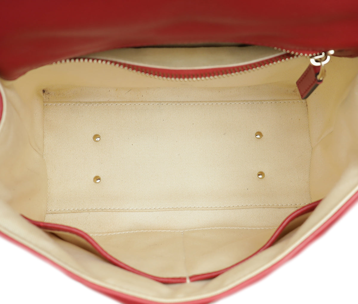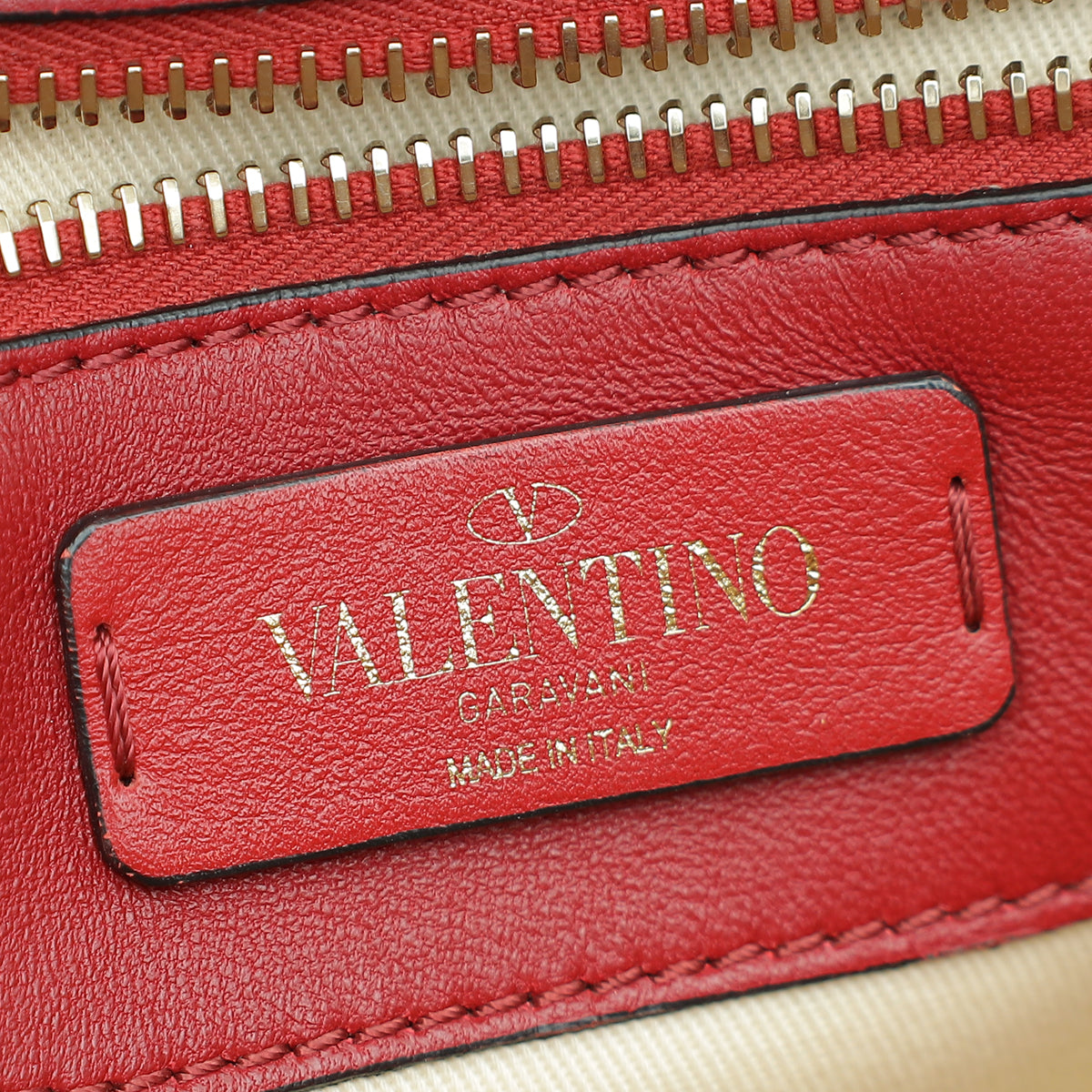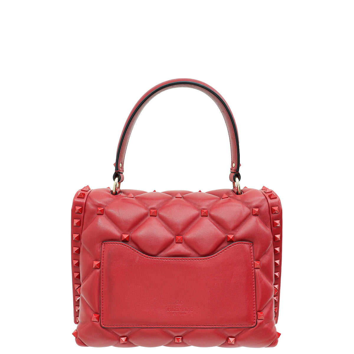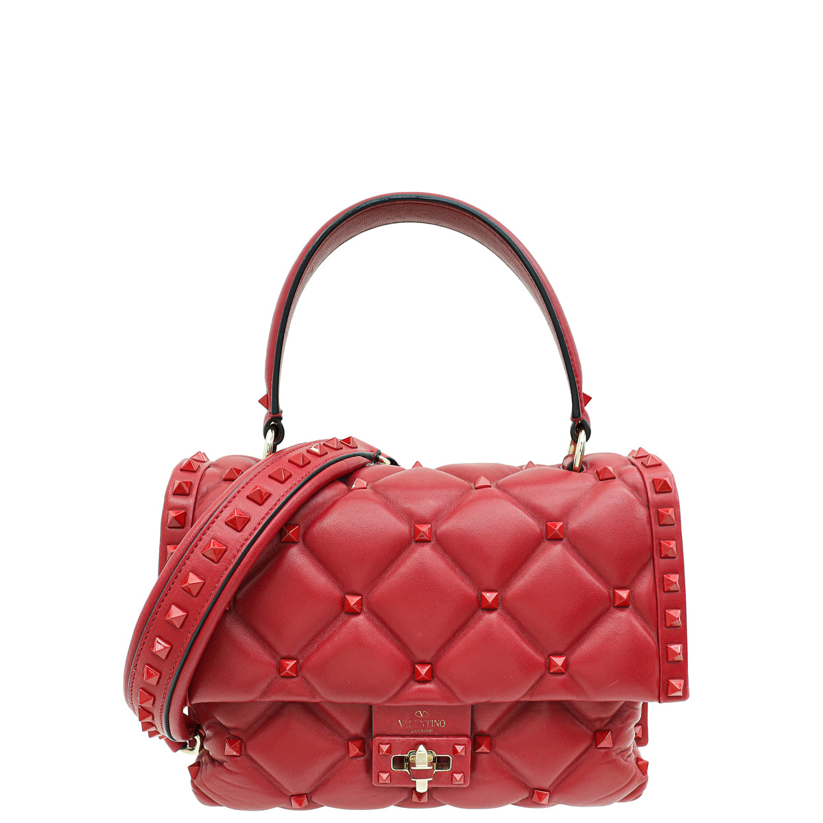 Material: Red Quilted Lambskin Leather with Pyramid Studs