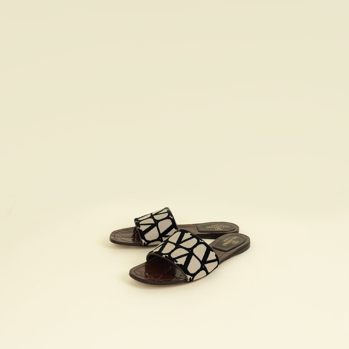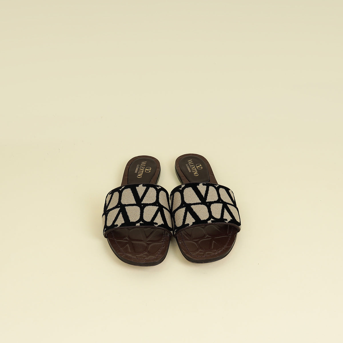Valentino Tricolor Toile Iconographe Flat Slide Sandals 37