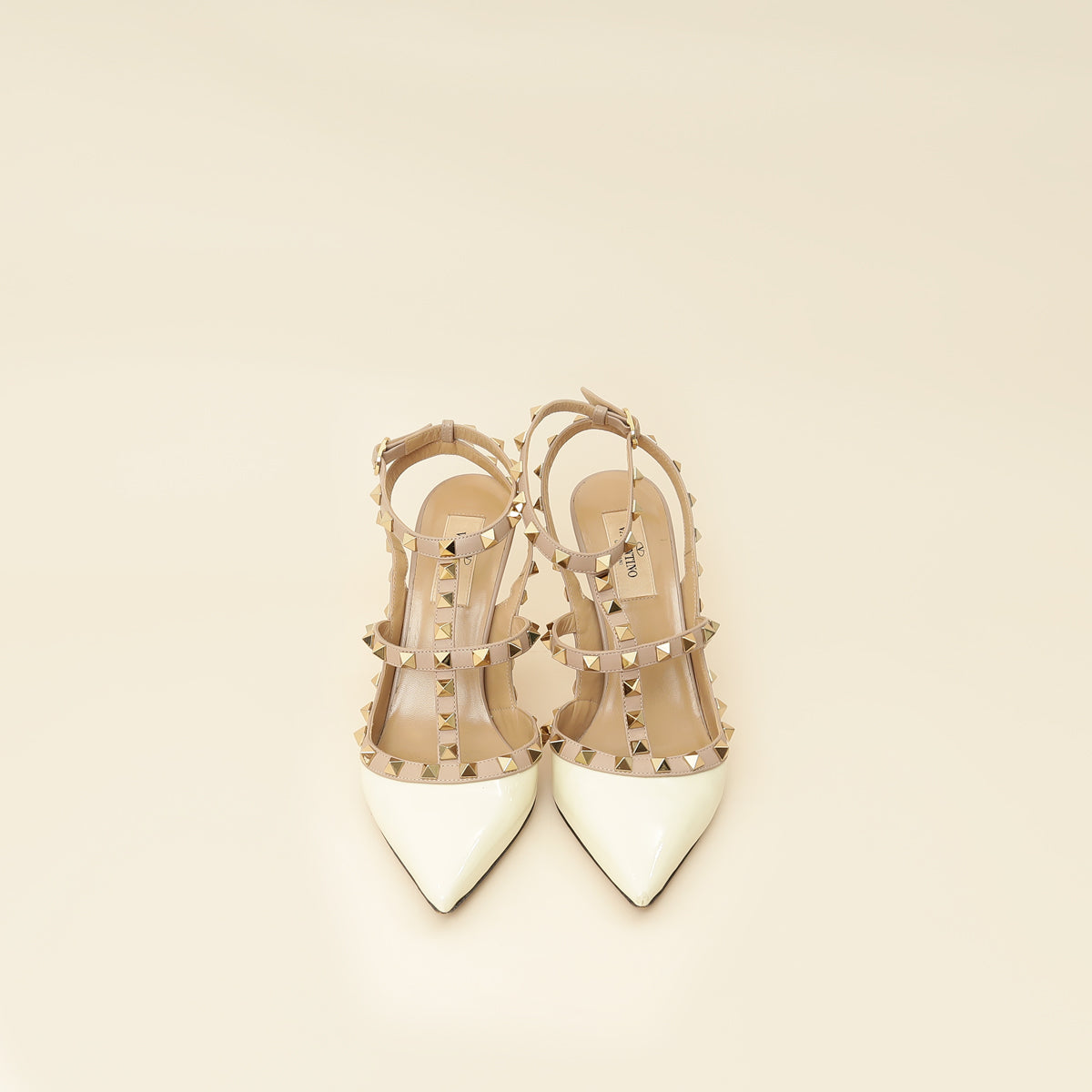 Material: White Patent Leather and Powder Nappa Leather Trim with Studs