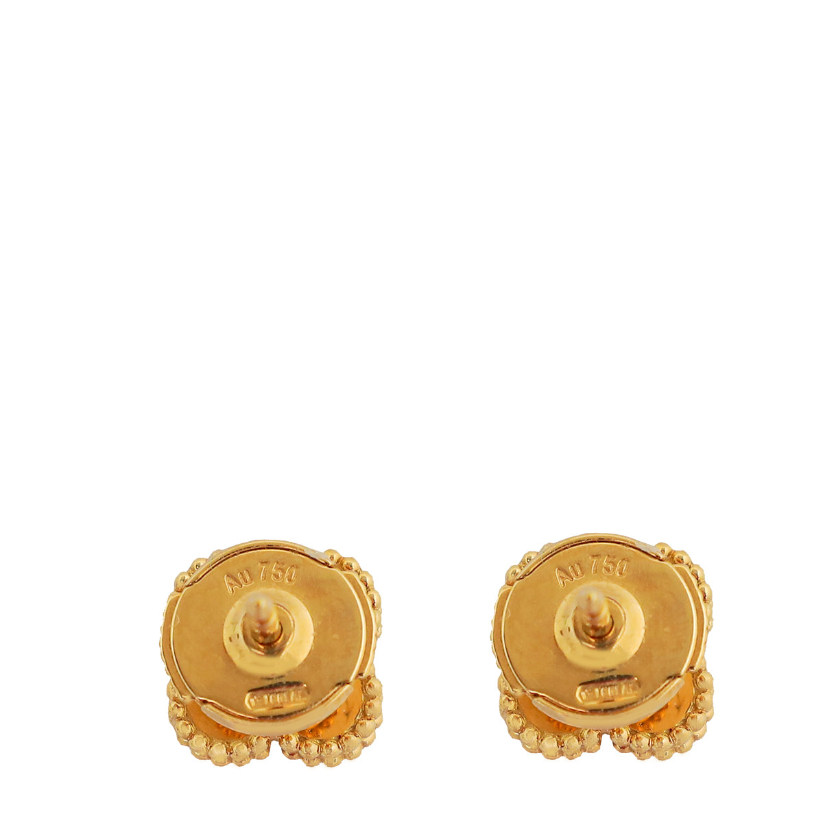 Van Cleef & Arpels 18K Yellow Gold Onyx Sweet Alhambra Stud Earrings