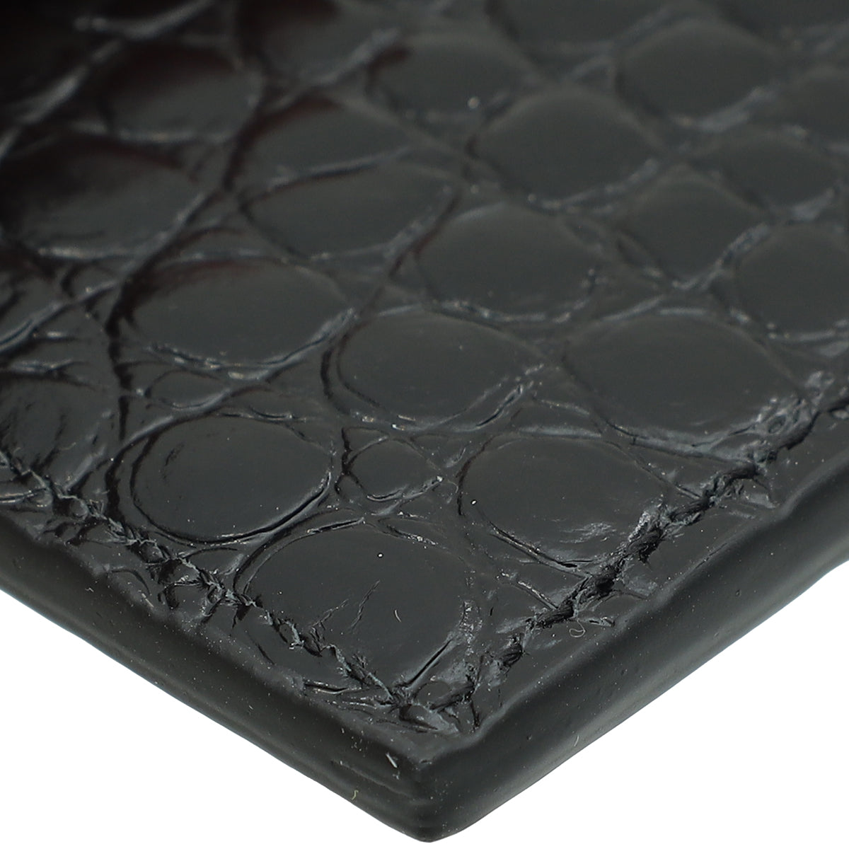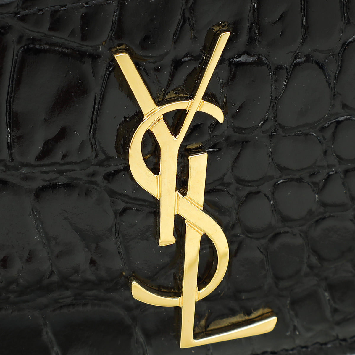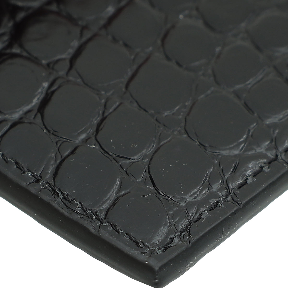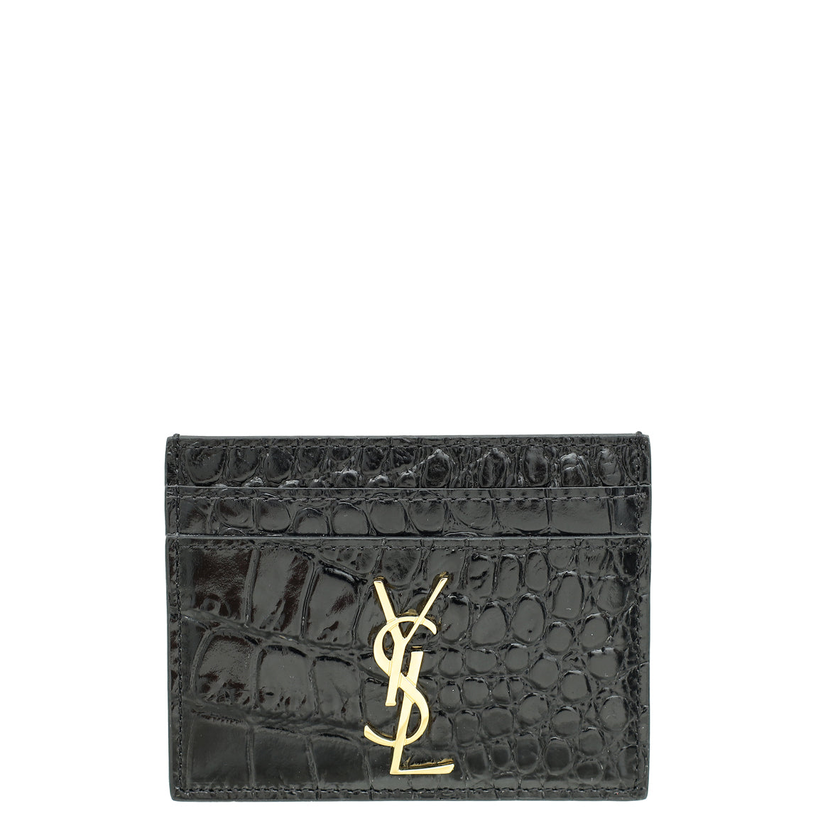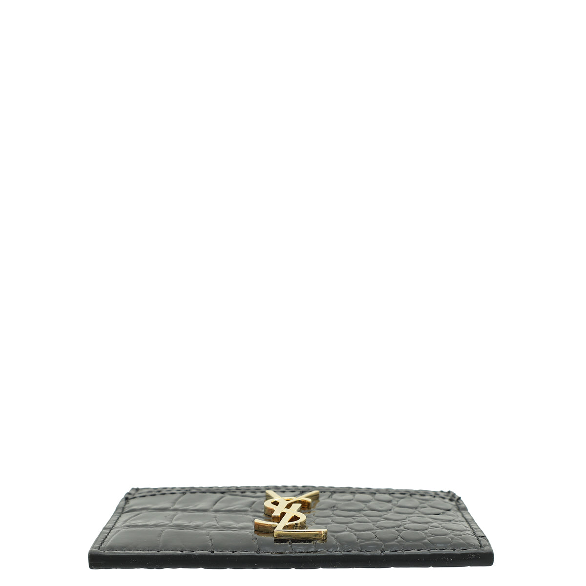 YSL Black Croco Embossed Cassandre Card Case-YSL-THE CLOSET
