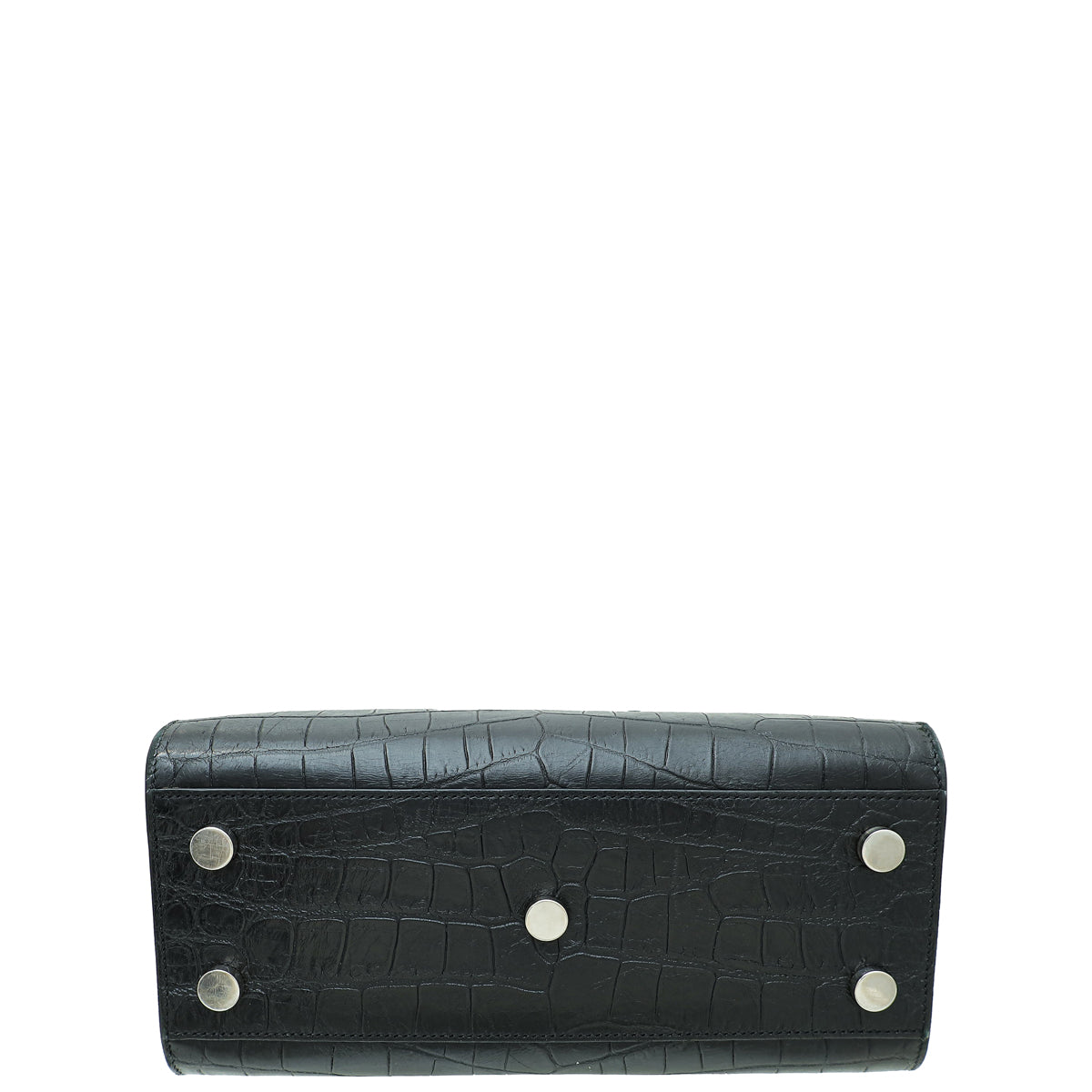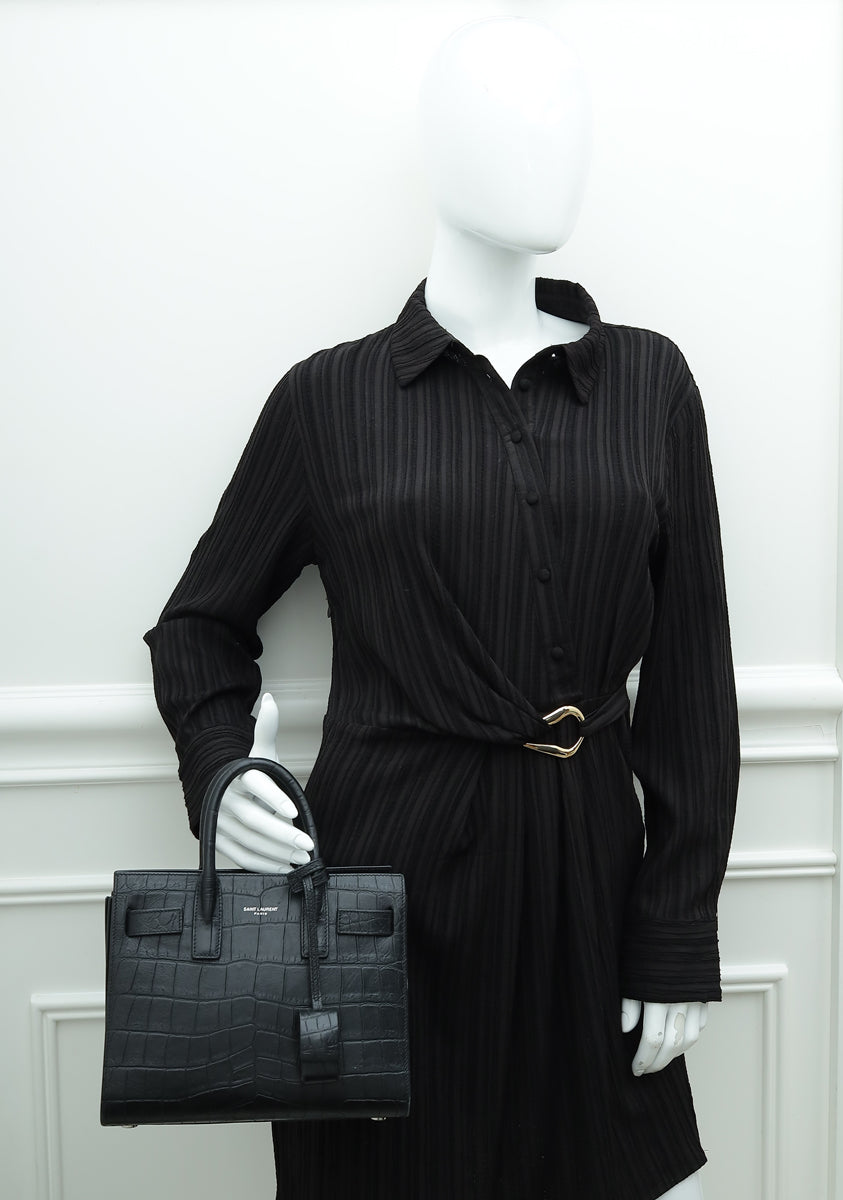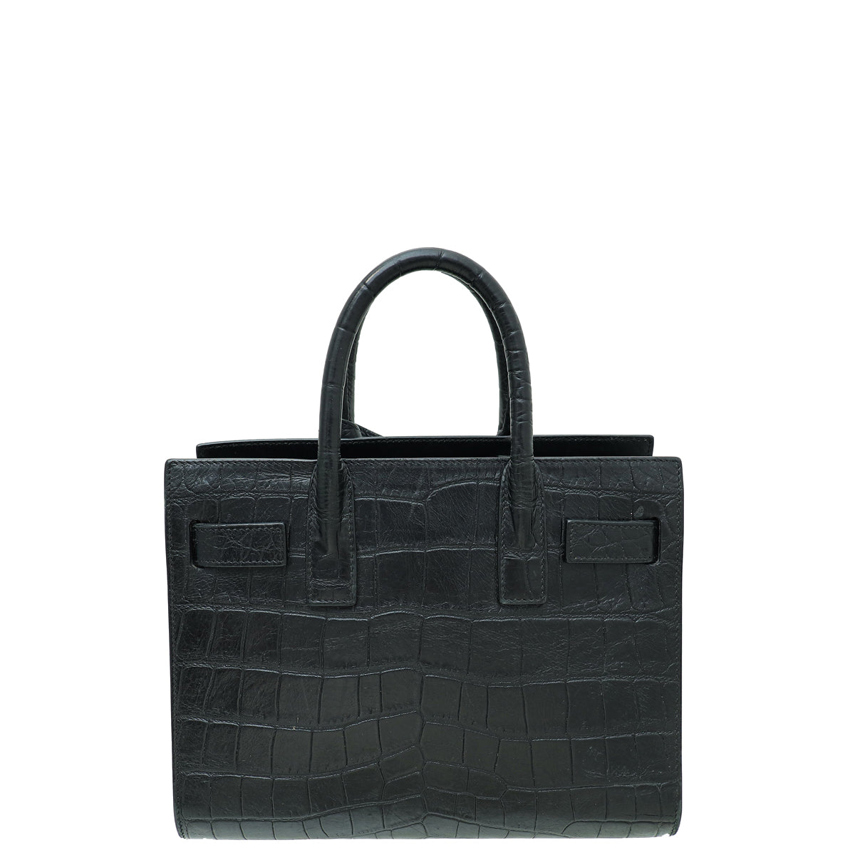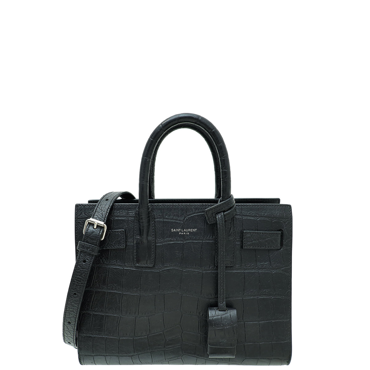 YSL Black Croco Embossed Sac De Jour Nano Bag
