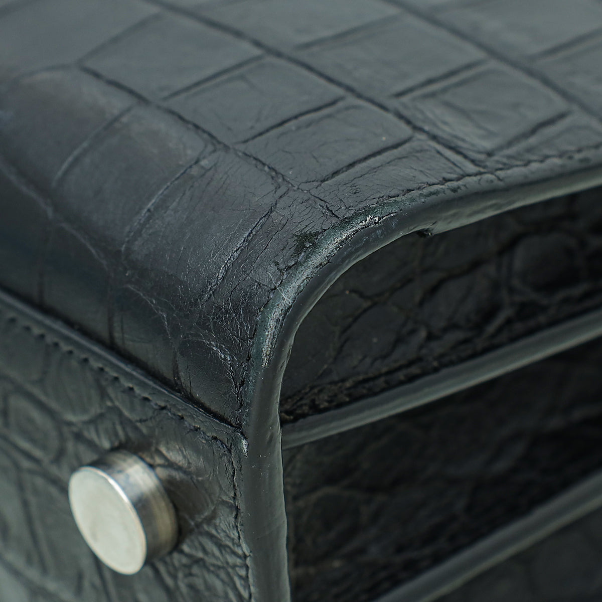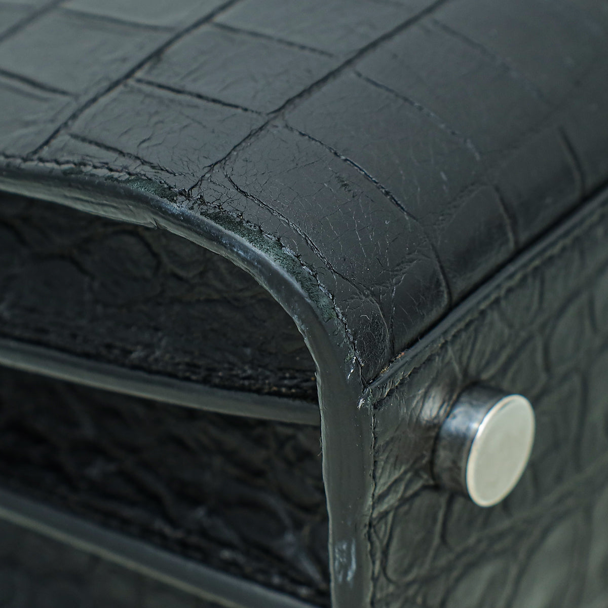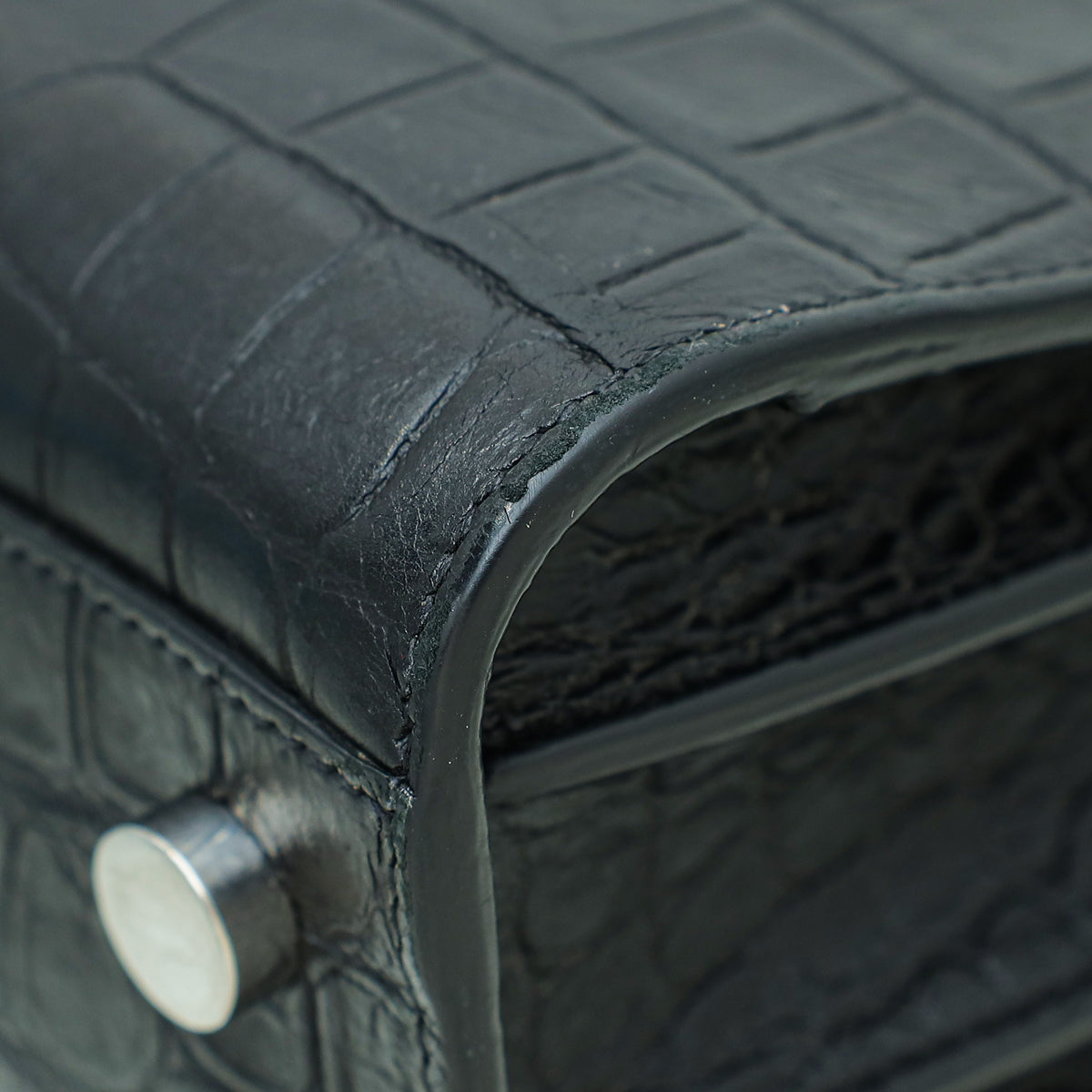 YSL Black Croco Embossed Sac De Jour Nano Bag