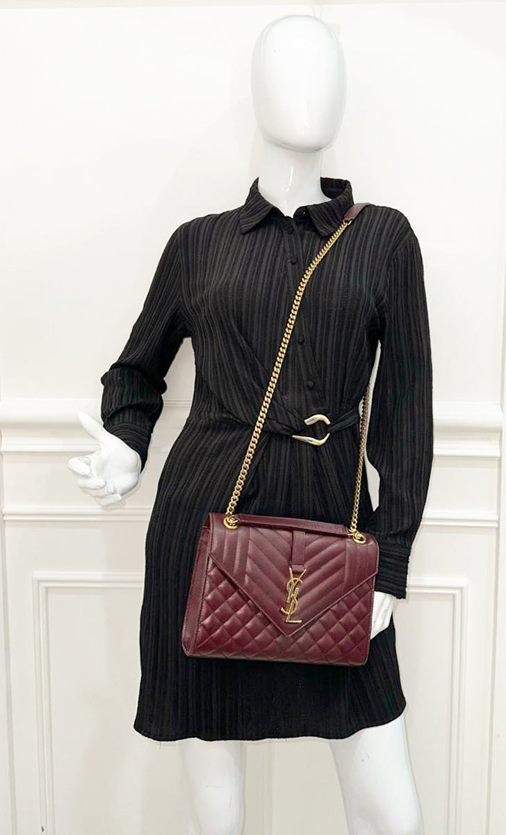 YSL Burgundy Mix Quilted Envelope Medium Shoulder Bag-YSL-THE CLOSET
