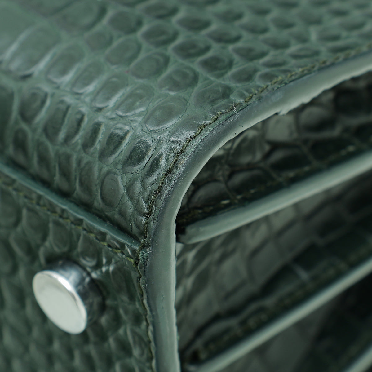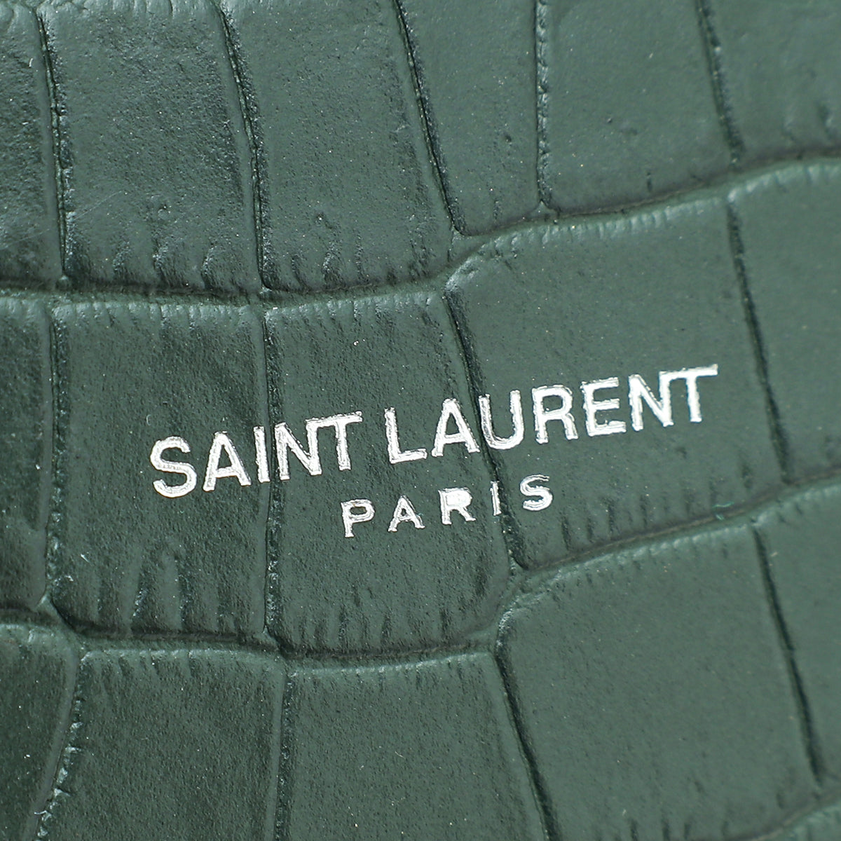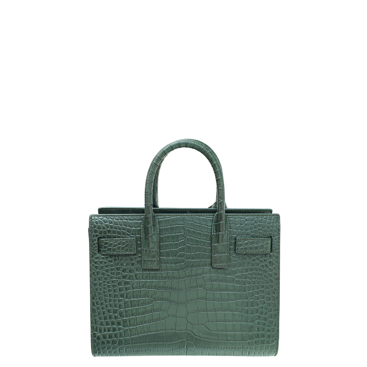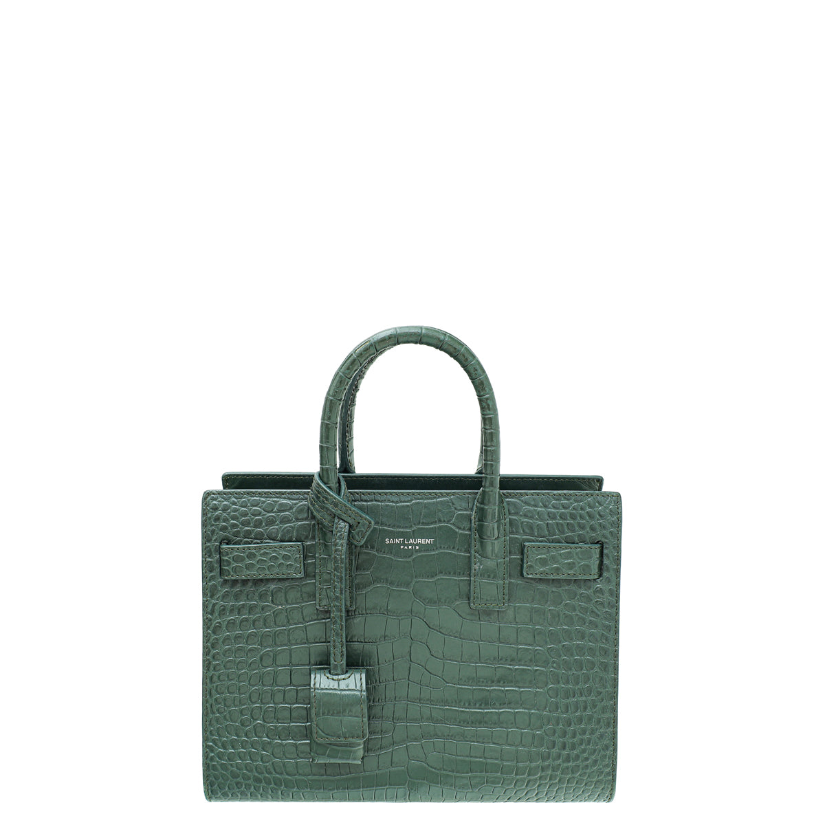 YSL Dark Green Croc Embossed Sac De Jour Nano Bag