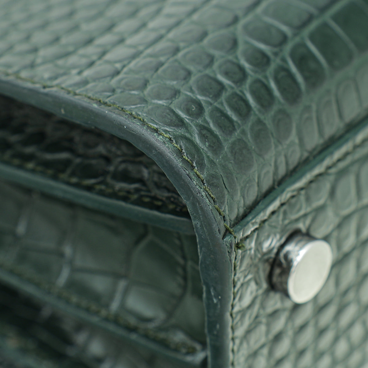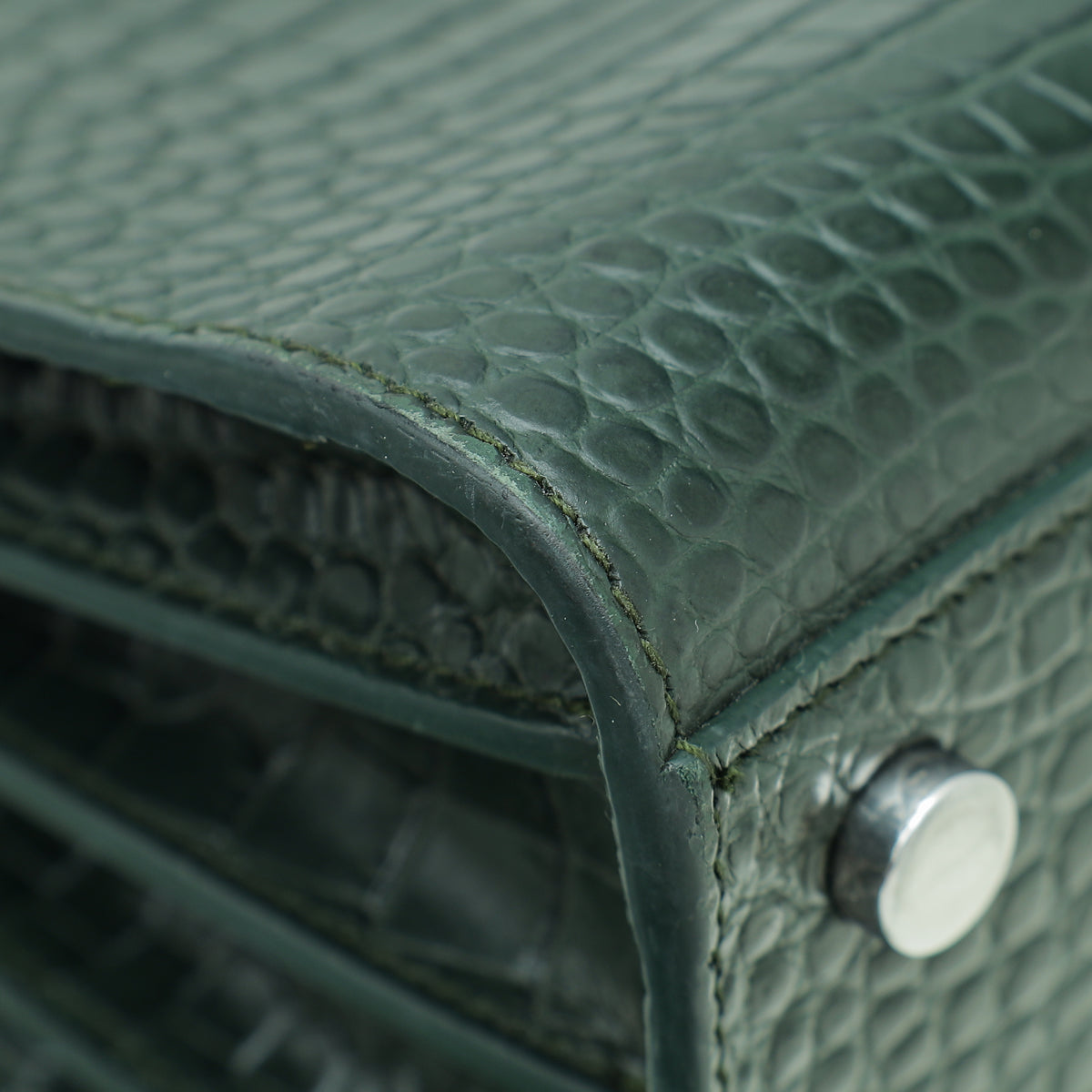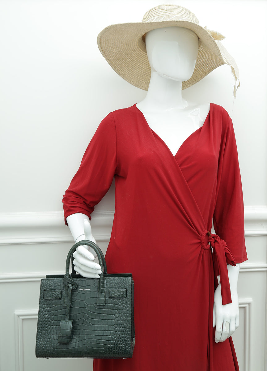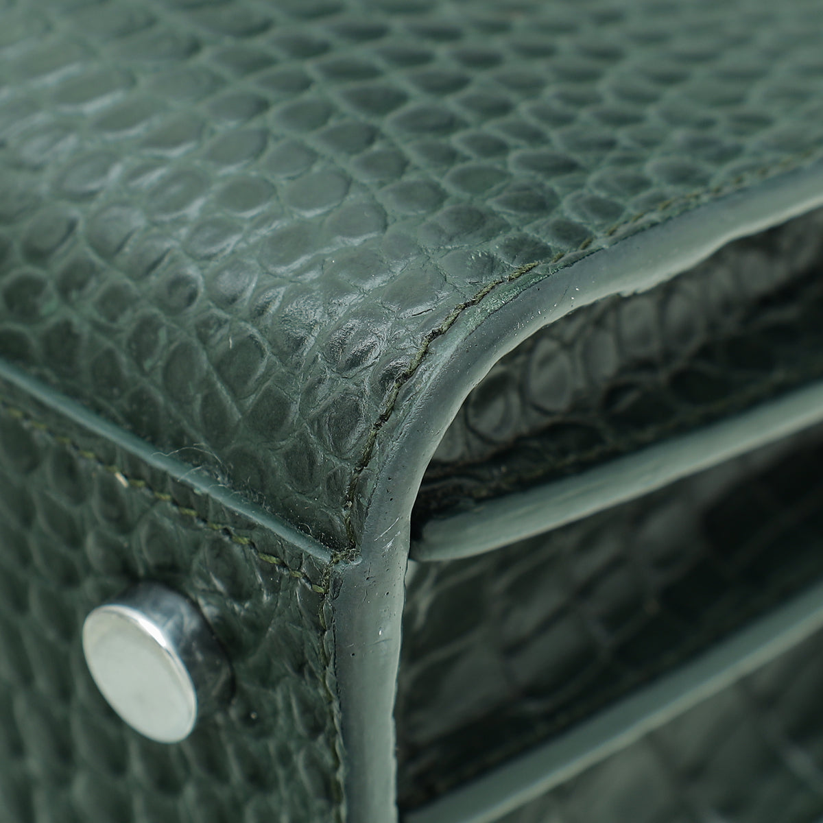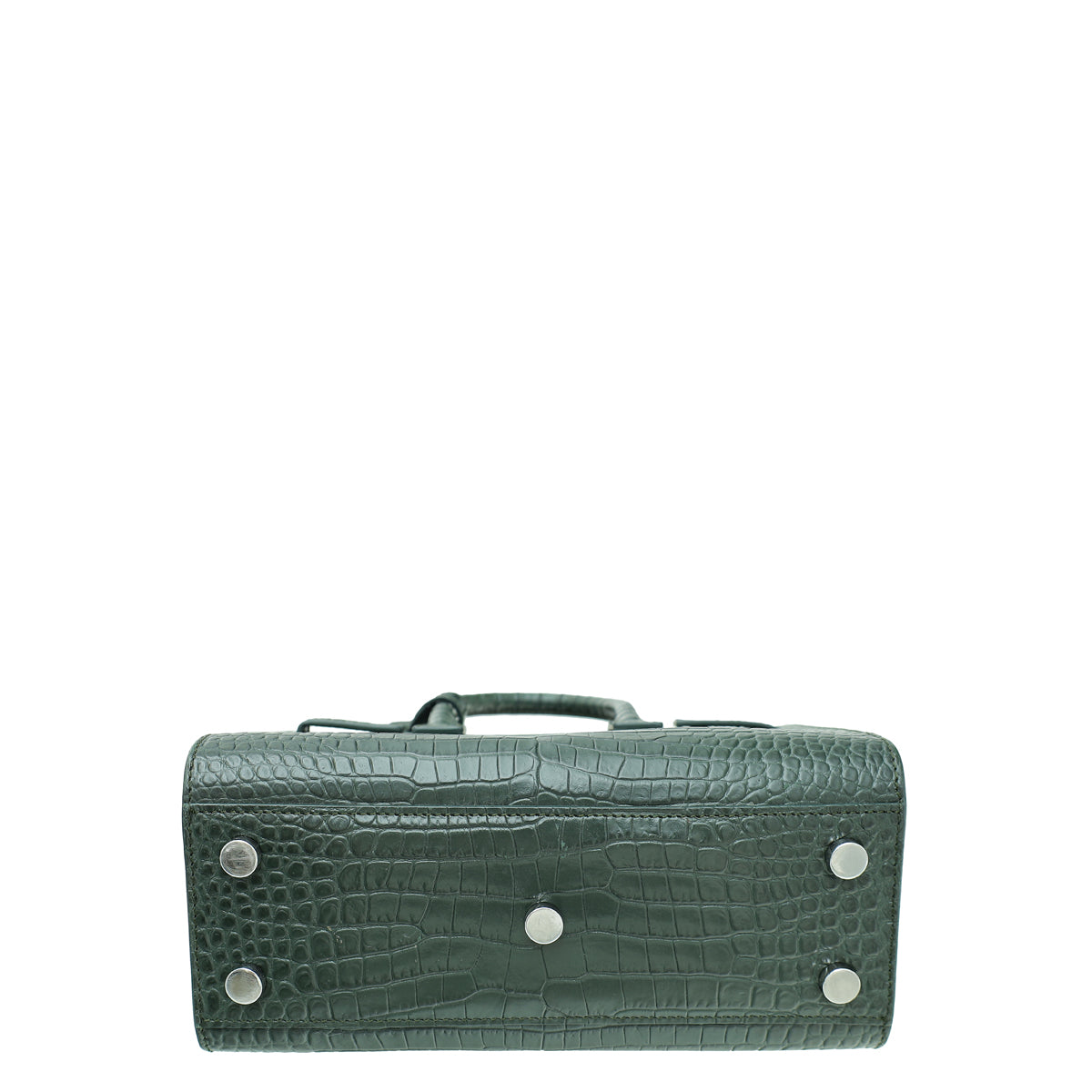 YSL Dark Green Croc Embossed Sac De Jour Nano Bag