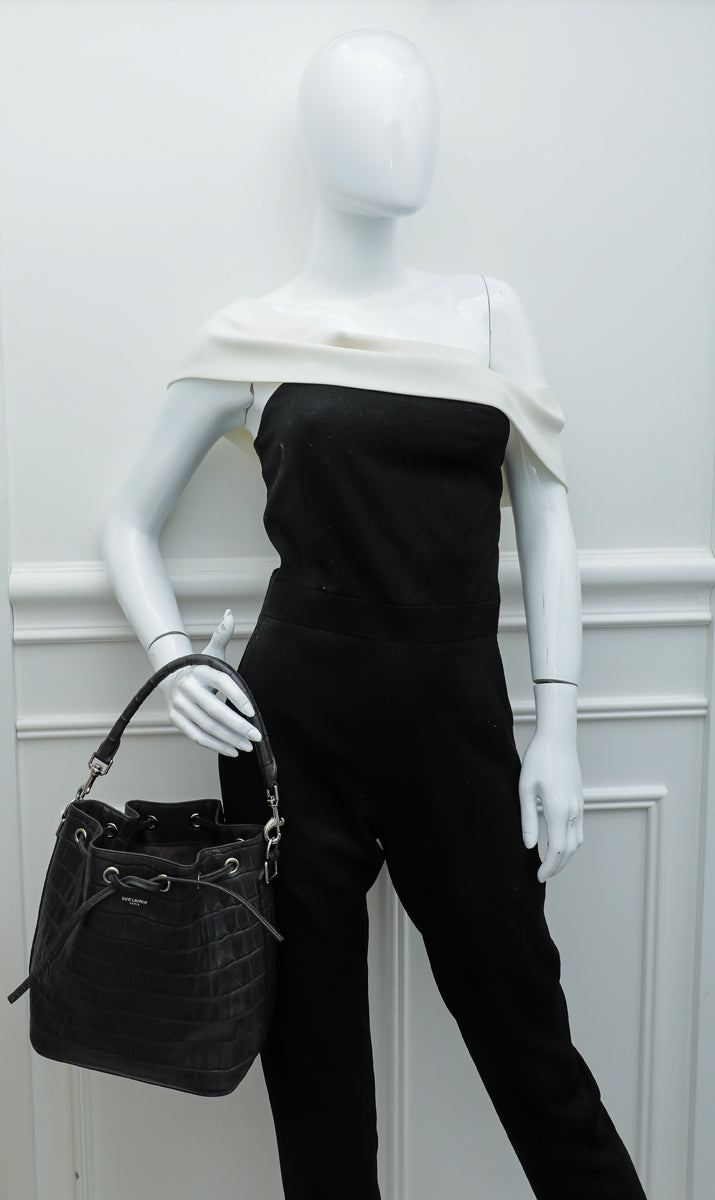 YSL Gray Croco Embossed Emmanuelle Bucket Bag
