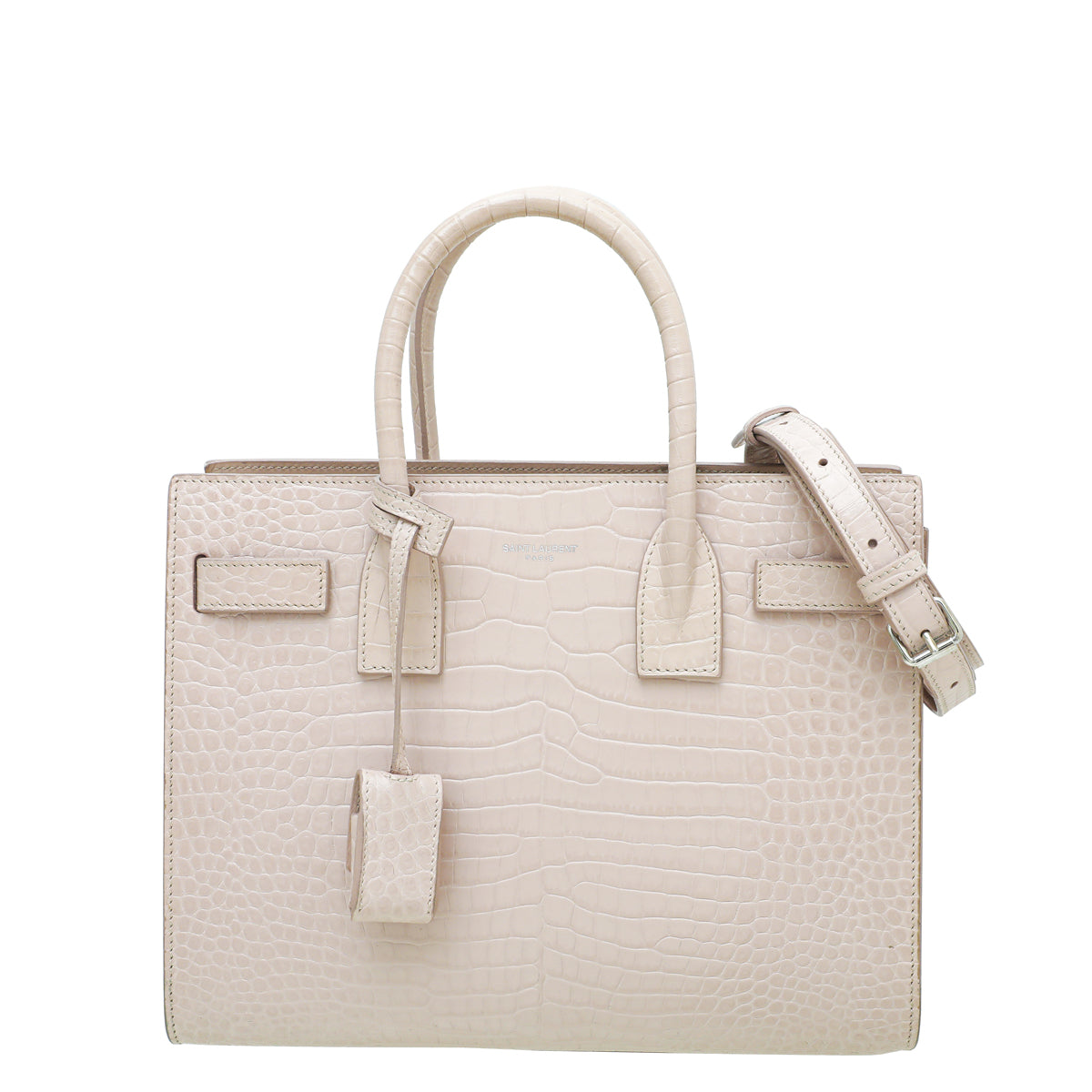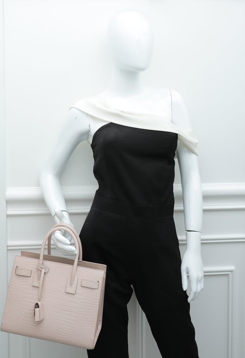 YSL Light Pink Croc Embossed Sac De Jour Baby Bag