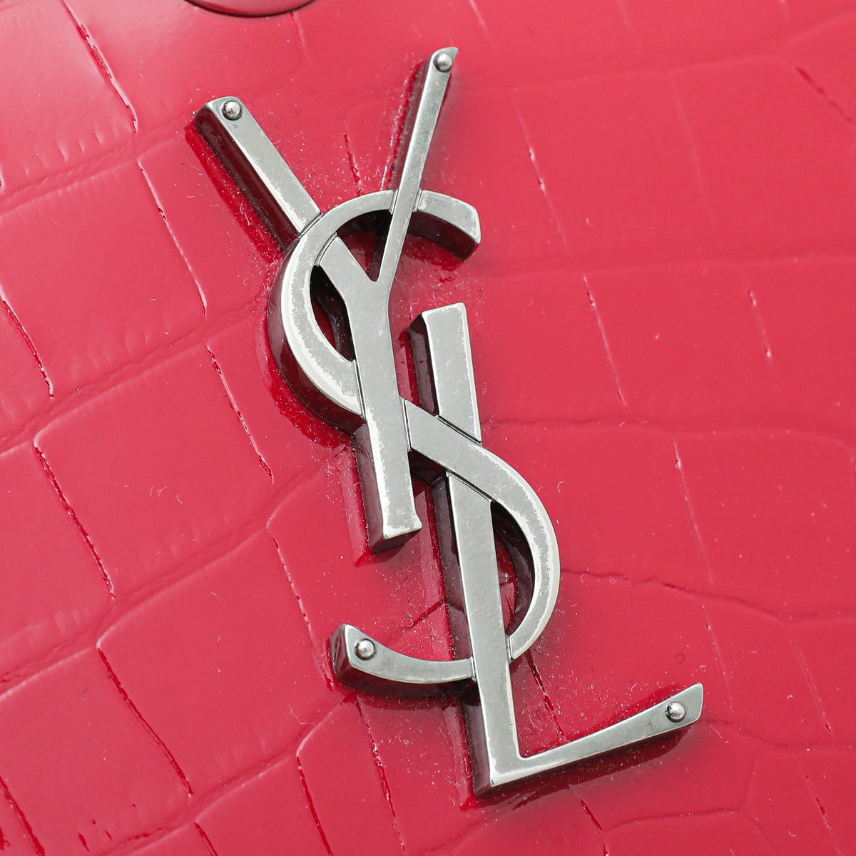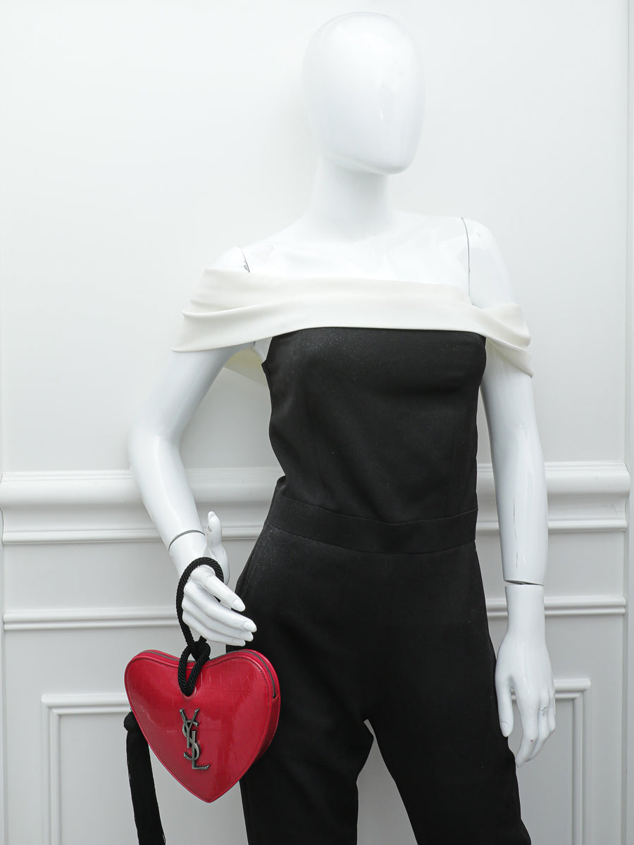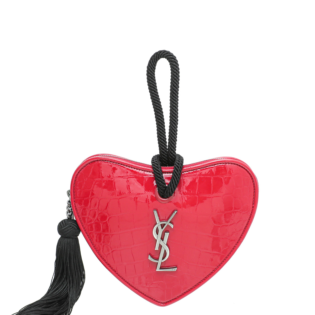 YSL Red Crocodile Embossed Heart Tassel Clutch